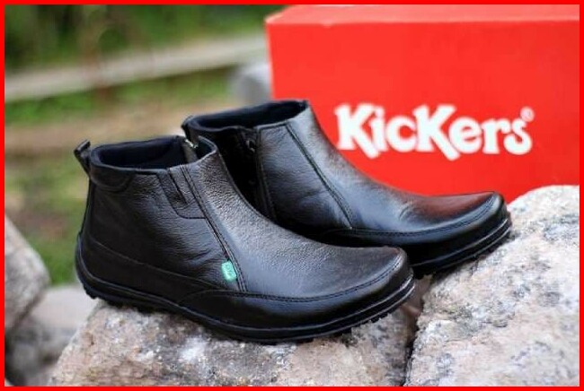 Sepatu Kickers Boots Formal Kerja Kantor Pria Zipper Full Kulit