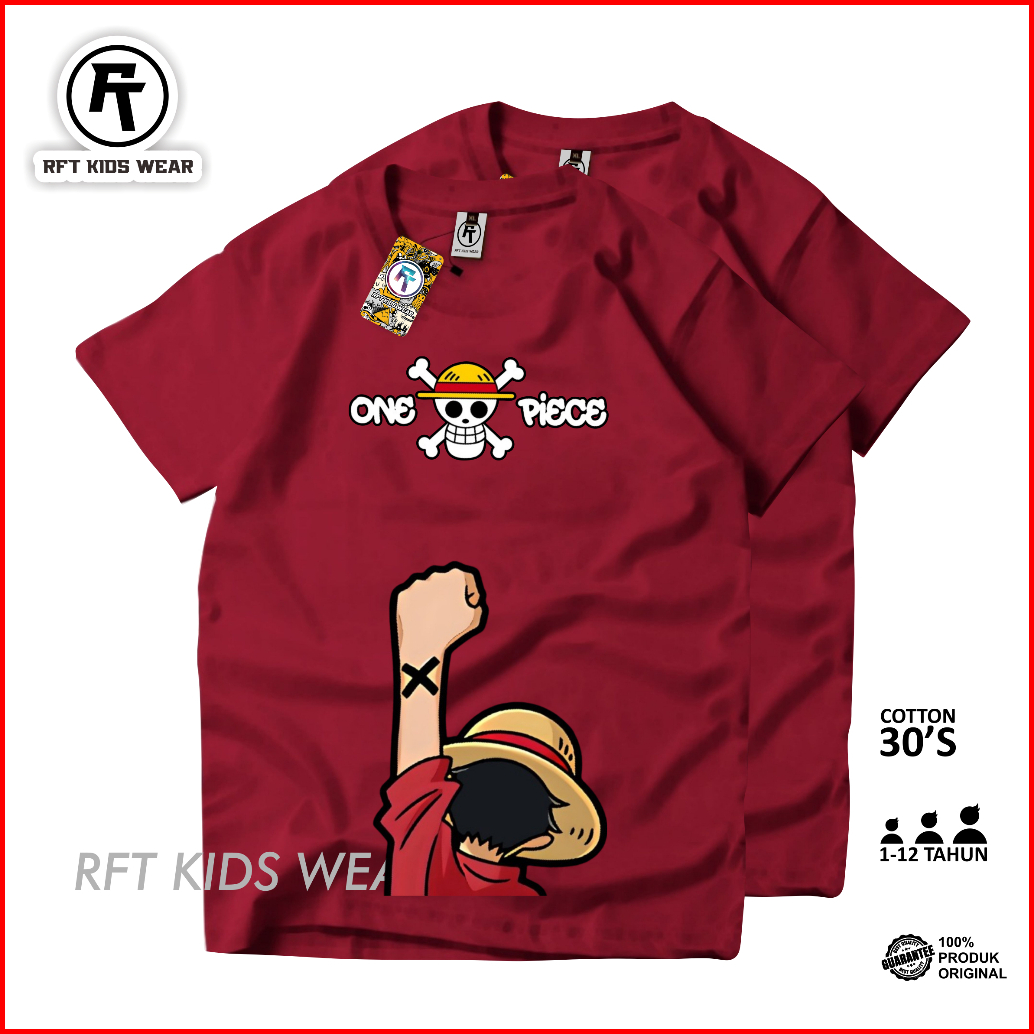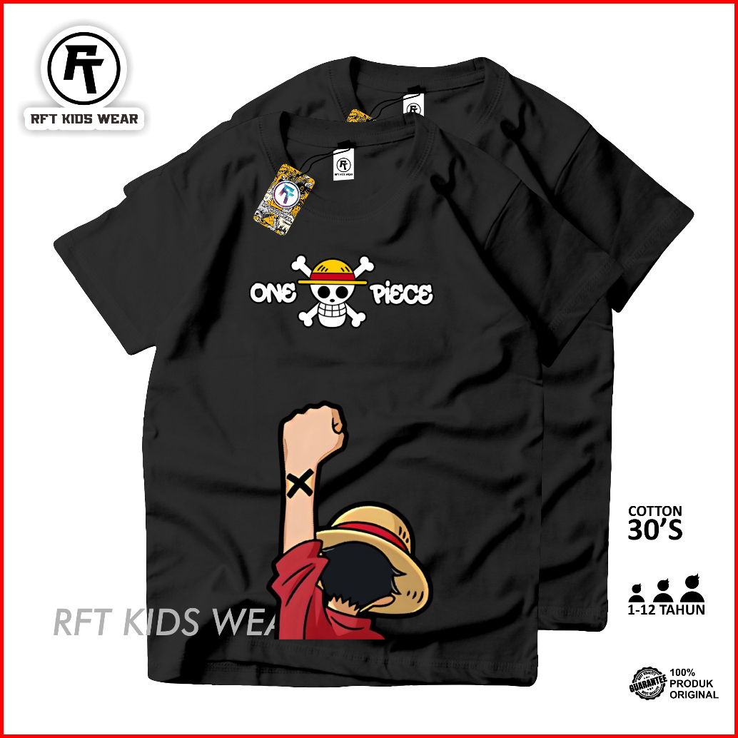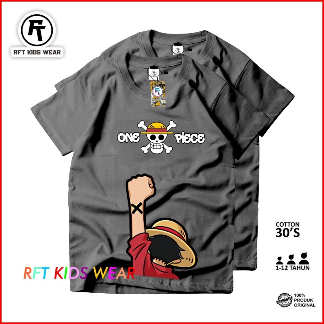 Baju Kaos Distro Anak Laki Laki Anak Perempuan One Piece Katun 30s Premium 1-12 Thn