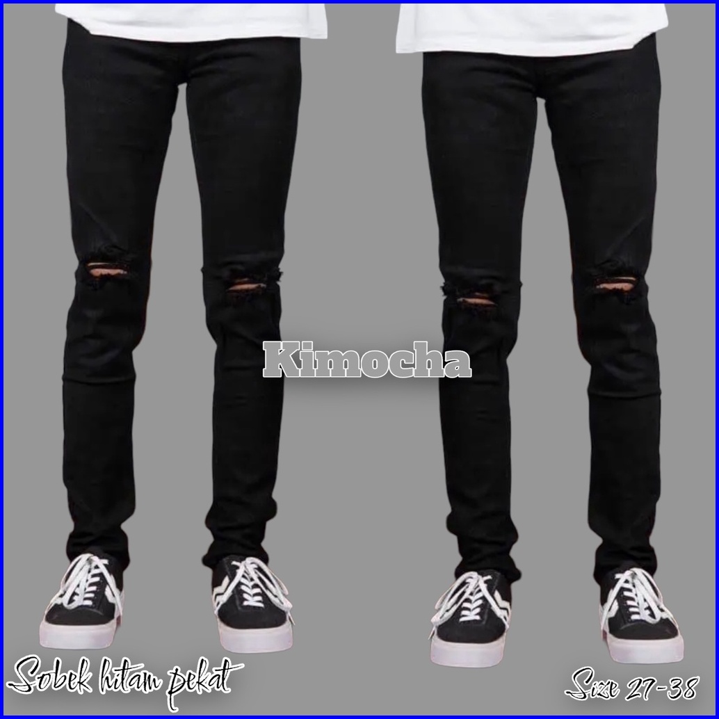 Celana Jeans Cowok Sobek Lutut Celana Pensil Pria Denim Ripped Celana Jeans Pria Slim Fit