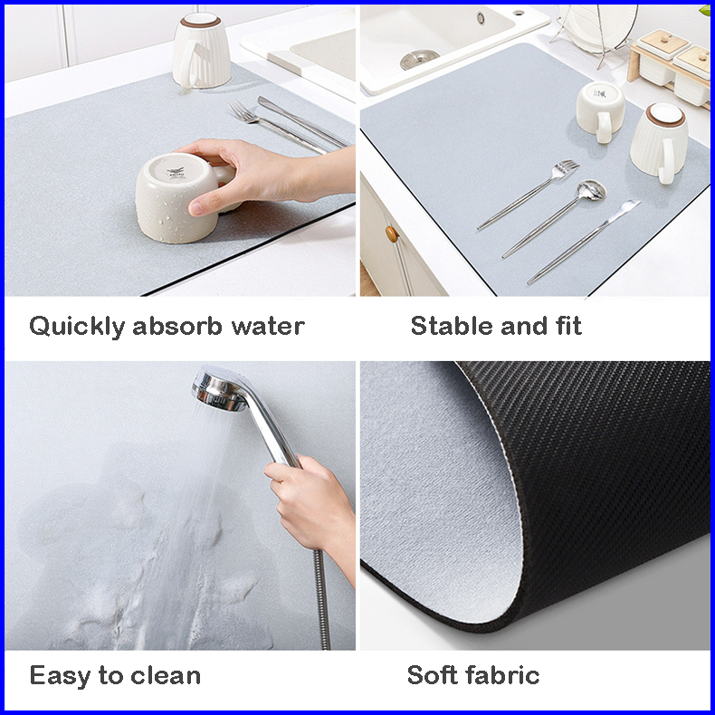 Alas Tatakan Pengering Dryer Piring Coffee Placemat Meja Dish Drainer Drying Mat Cuci Anti Slip Untuk Dapur Super Absorb