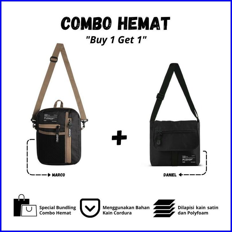 Pushop Kombo Hemat Beli 1 Dapat 2 Tas Selempang Pria Slingbag Danile Get Tas Sling Bag Marco