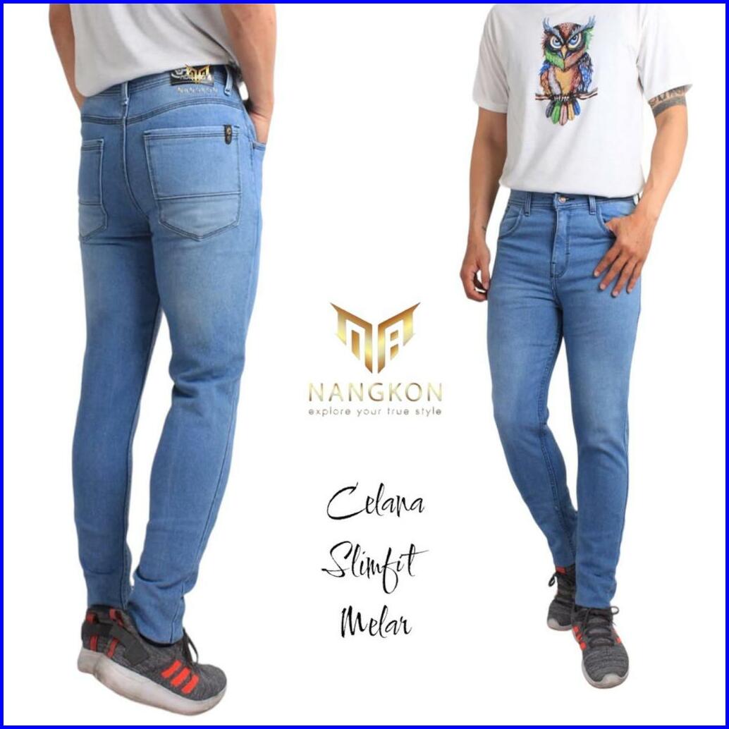 Celana Jeans Pria Denim Pensil Cowok Hitam Celana Jeans Panjang Pria Slim Fit