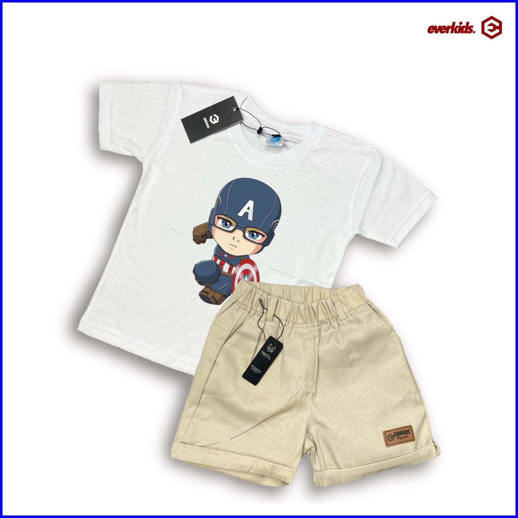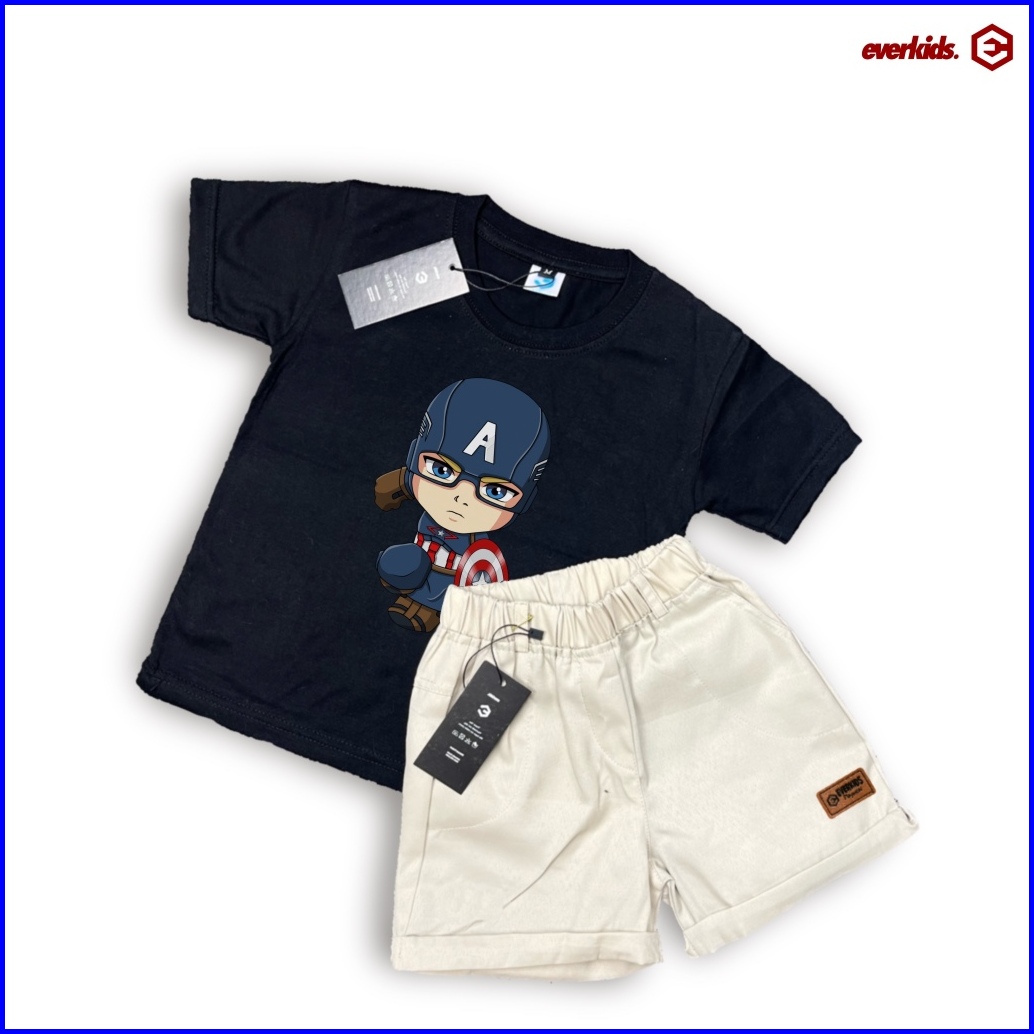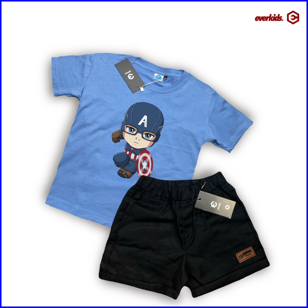Everkids Setelan Kaos Anak 1-6 Thn Sablon Keren Kaos Anak Marvel Kd 33