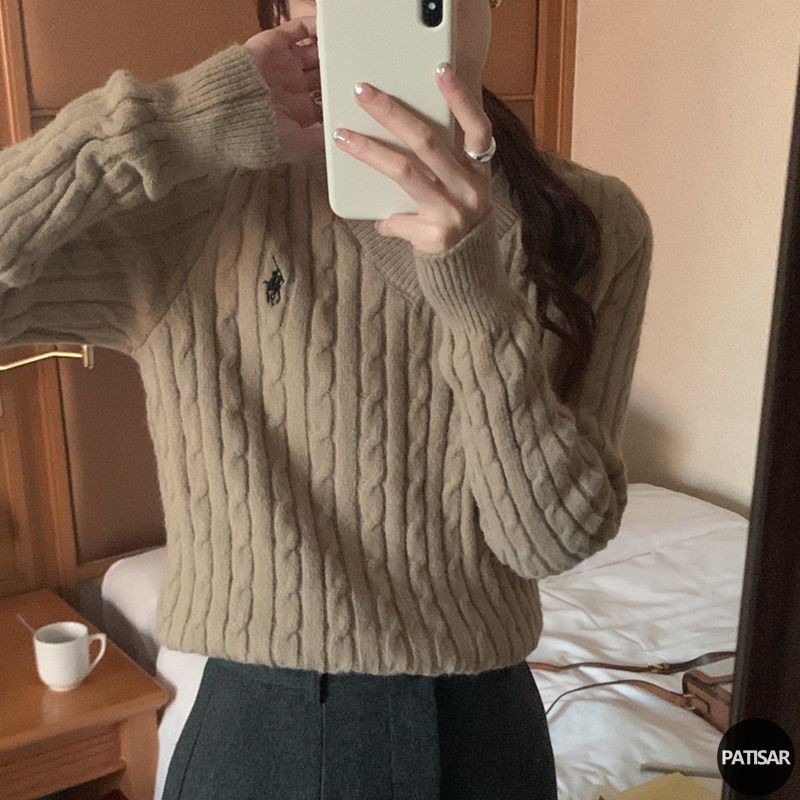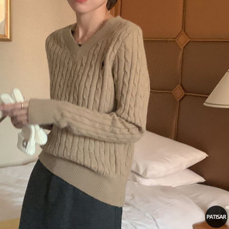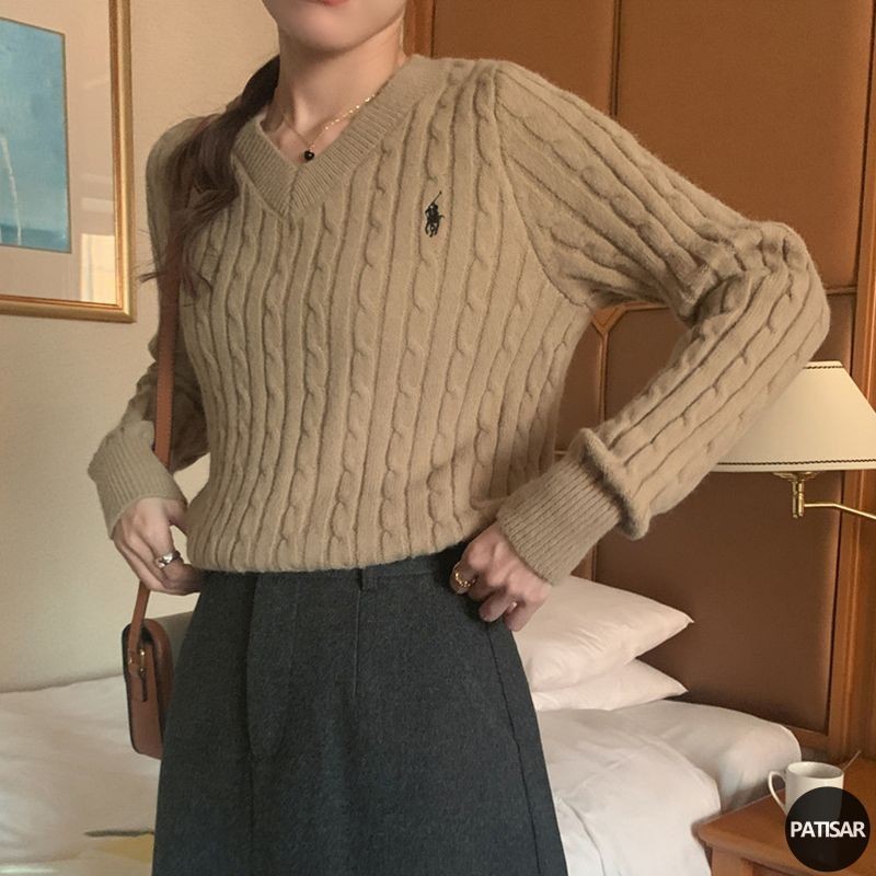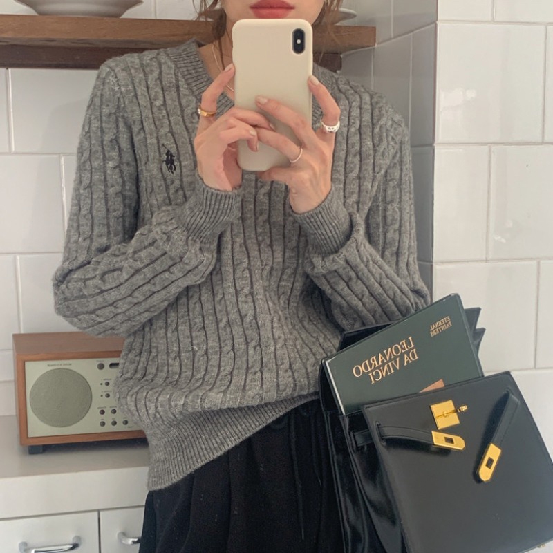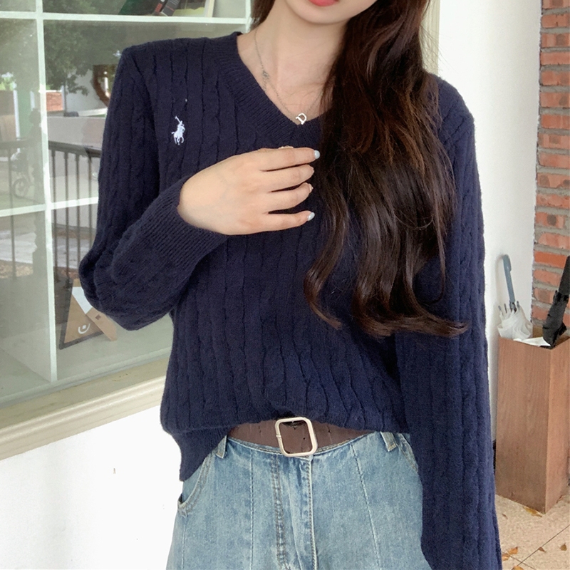 Korean Switer Rajut Wanita Lucu Sweater Knit V-Neck Sweater Crop Polos Baju Rajut Wanita Lengan Panjang Pa