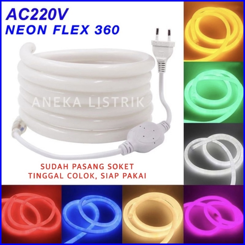 Paket Lampu Strip Led Neon Flex 360 Bulat Waterproof Neon Flex 360 Derajat Outdoor Lampu Plafon Kamar Hias Lampu Cafe Le
