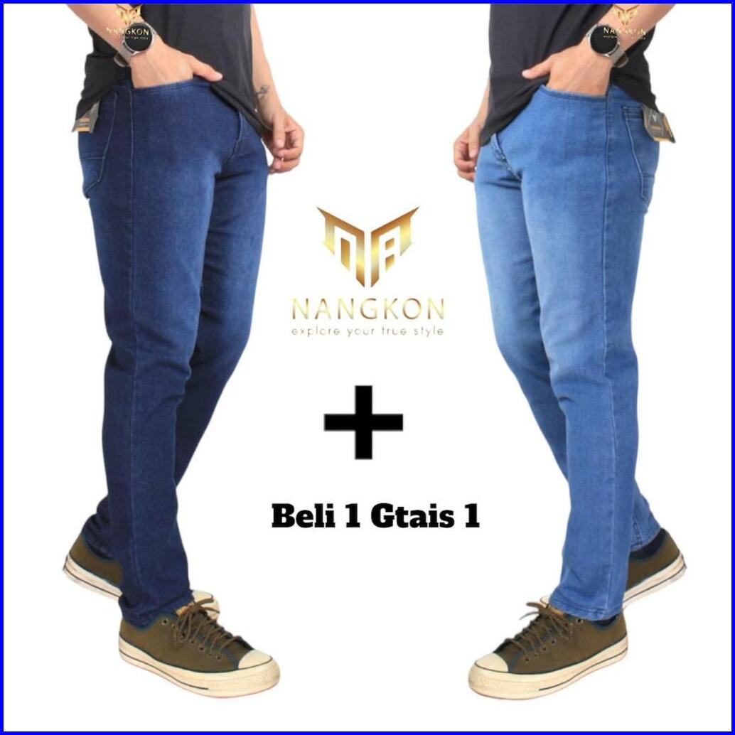 Paket Hemat Beli 1 Gratis Satu Celana Jeans Pria Slimfit Nangkon Bahan Melar Pensil Cowok Strech