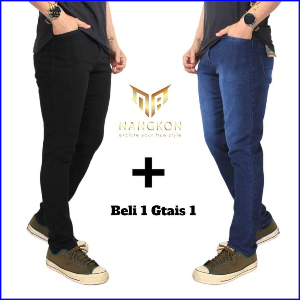 Nangkon - Paket Hemat Beli 1 Gratis Celana Jeans Pria Slimfit Bahan Melar Sofe Jeans Streech Premium