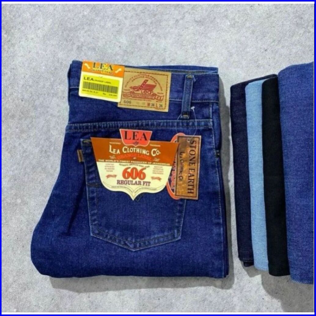 Celana Jeans Standar Pria Lea Reguler Fit Ukuran 27-38 Bahan Tebal Denim Premium