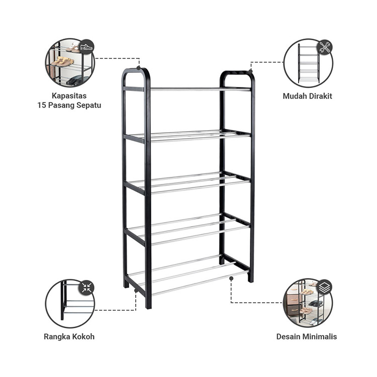 Informa 42X20X79 Cm Rak Sepatu 5 Tingkat Hitam Shoe Rack Organizer Sandal Sepatu Kabinet Alas Kaki Tempat Penyimpanan