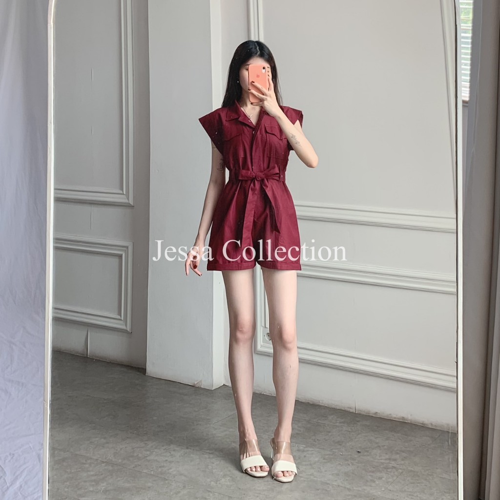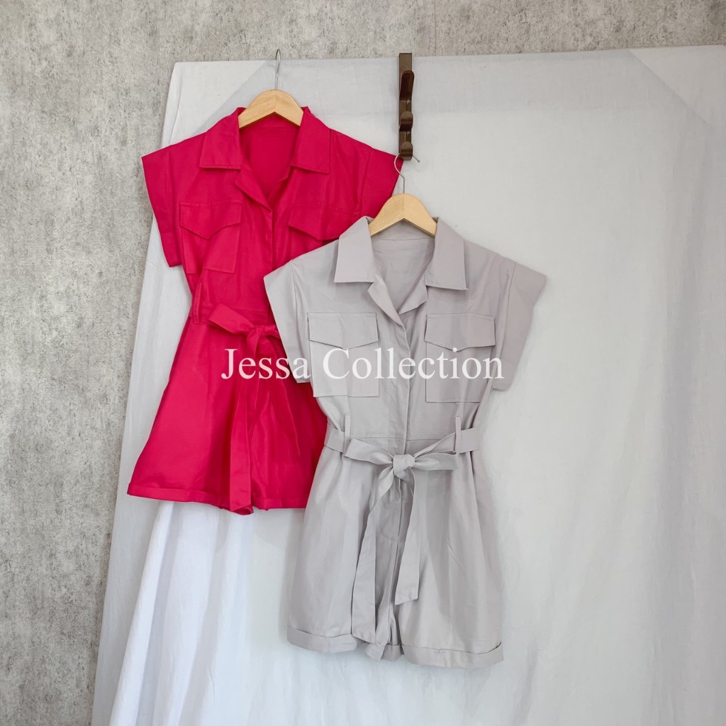 Premium Odysee Ribbon Jumpsuit TH 377 / 1004 COTTON Overall Wanita Pocket Terusan Celana Pendek Casual Bahan Katun