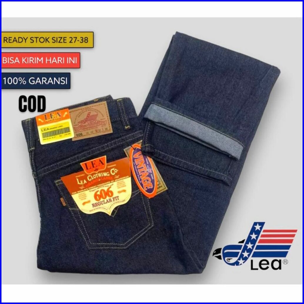Celana Jeans Standar Pria Lea 606 Panjang Reguler Fit Denim