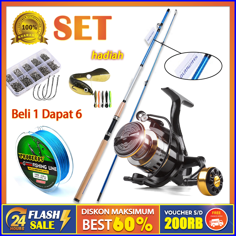 Pancing 1 Set Lengkap Kuat Set Perlengkapan Memancing Profesional Pancing Spinning Fishing Reel 1000-7000 Harga Terendah