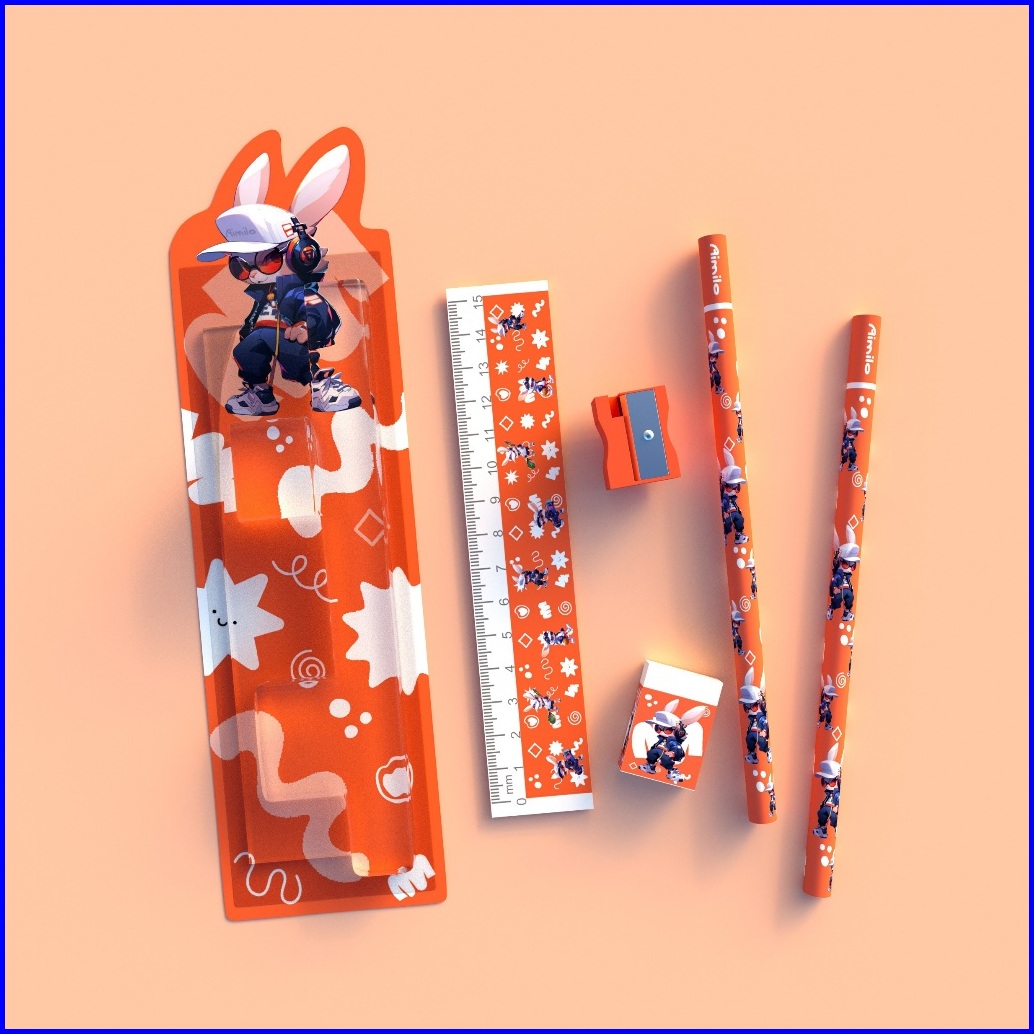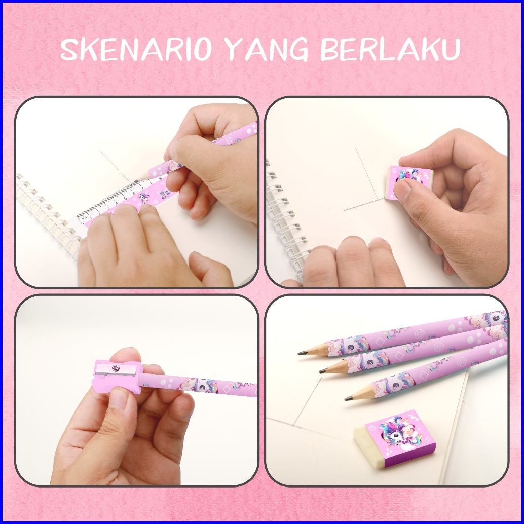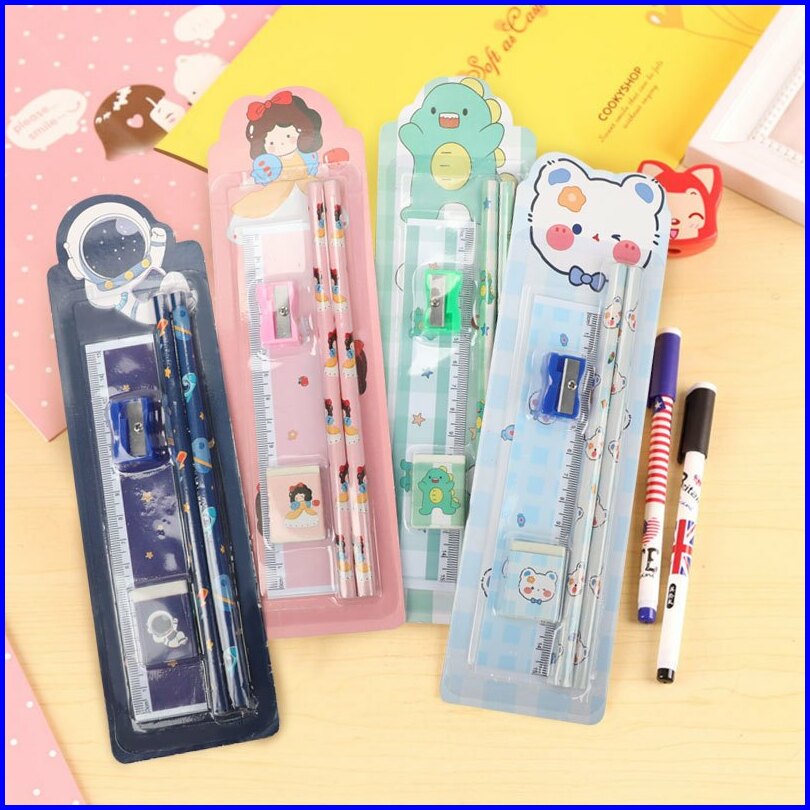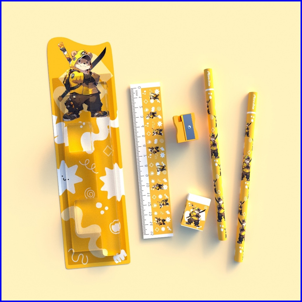 Aimilo Stationery Set 5 In 1 Alat Tulis Anak Sekolah Penghapus Penggaris Pensil Serutan Karakter Lucu