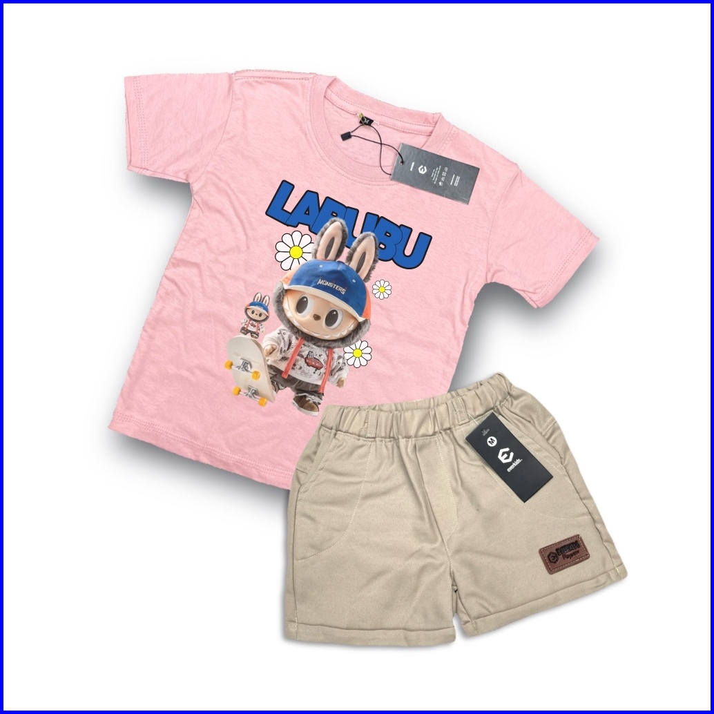 Everkids Setelan Kaos Anak 1-6 Thn Sablon Keren Kaos Labubu Kd 50