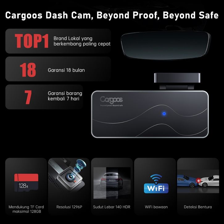 Dashcam Mobil Dash Cam Mobil Cargoos O1 Lite 1296P Dash Cam Mobil Support WiFi Aplikasi G Sensor Kamera Mobil 2K 1440p G