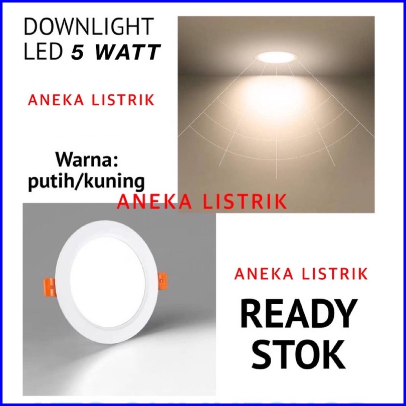 Lampu Downlight Led Plafon 5 Watt Asli Full Terang 5w Nyala Ada Putih Warm White