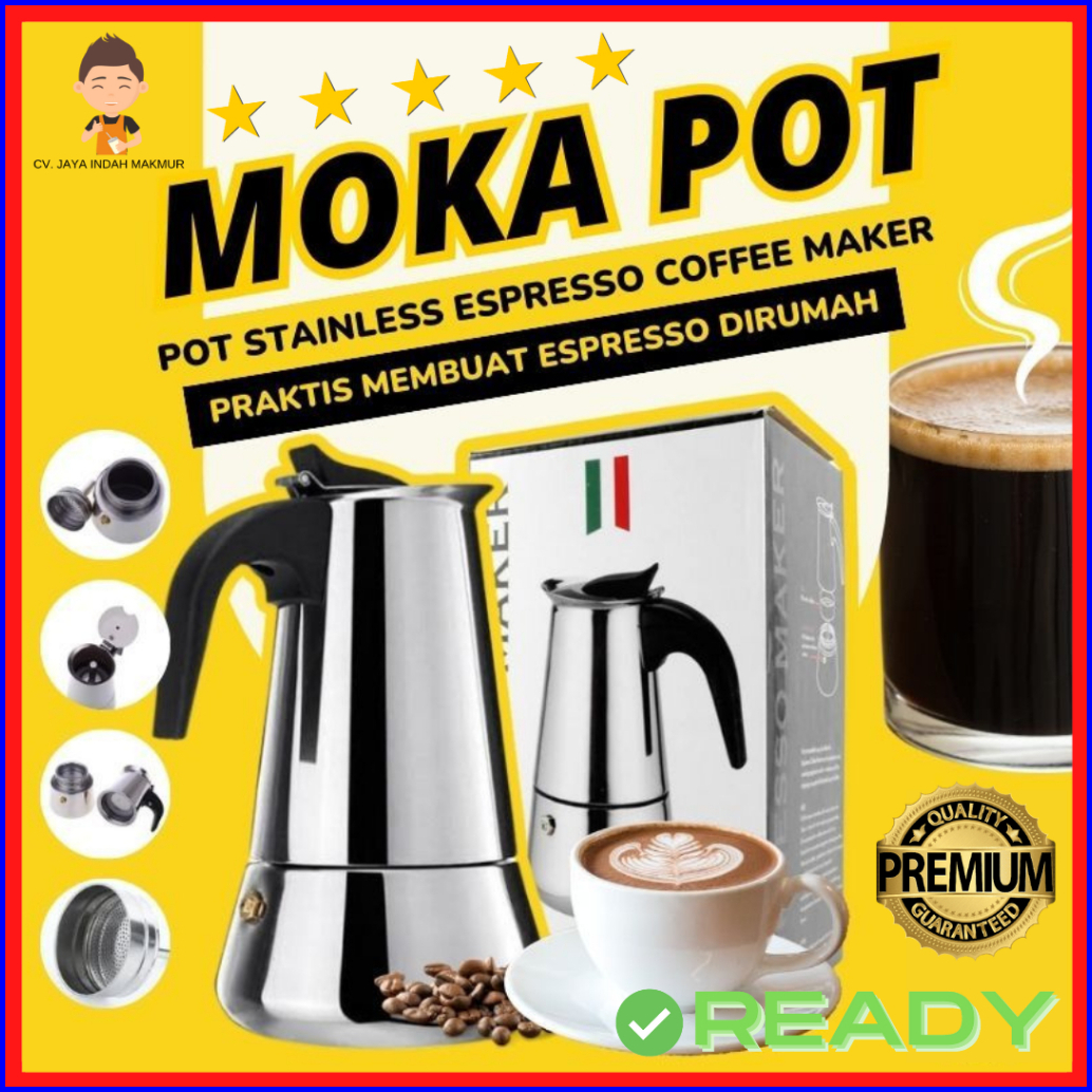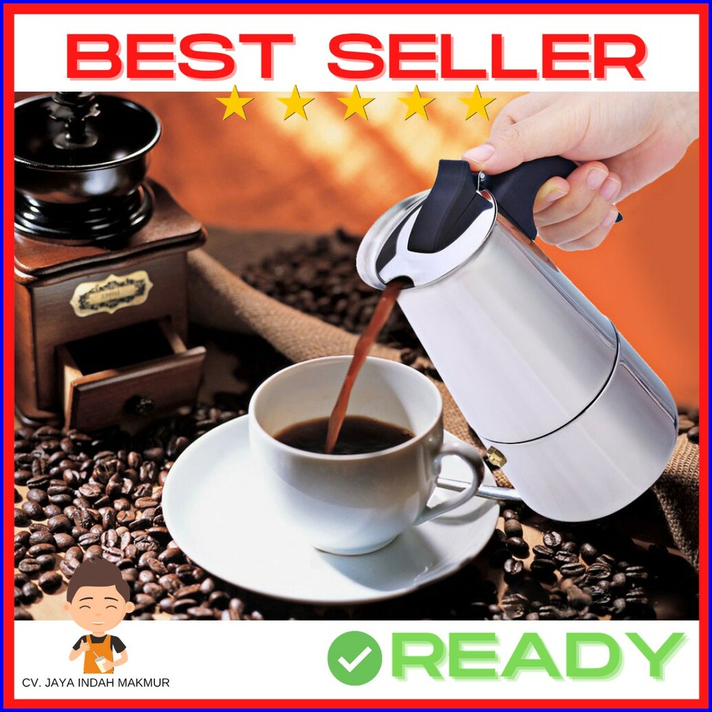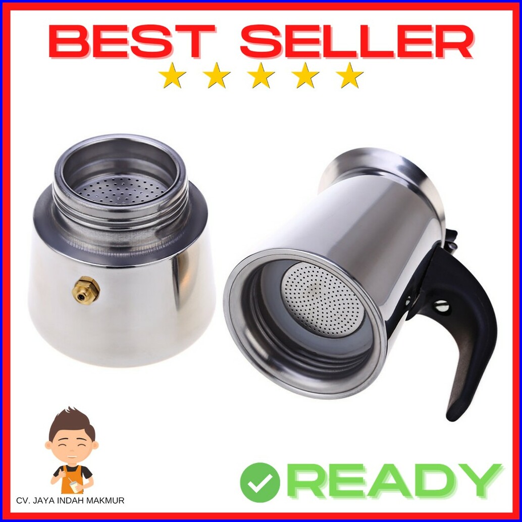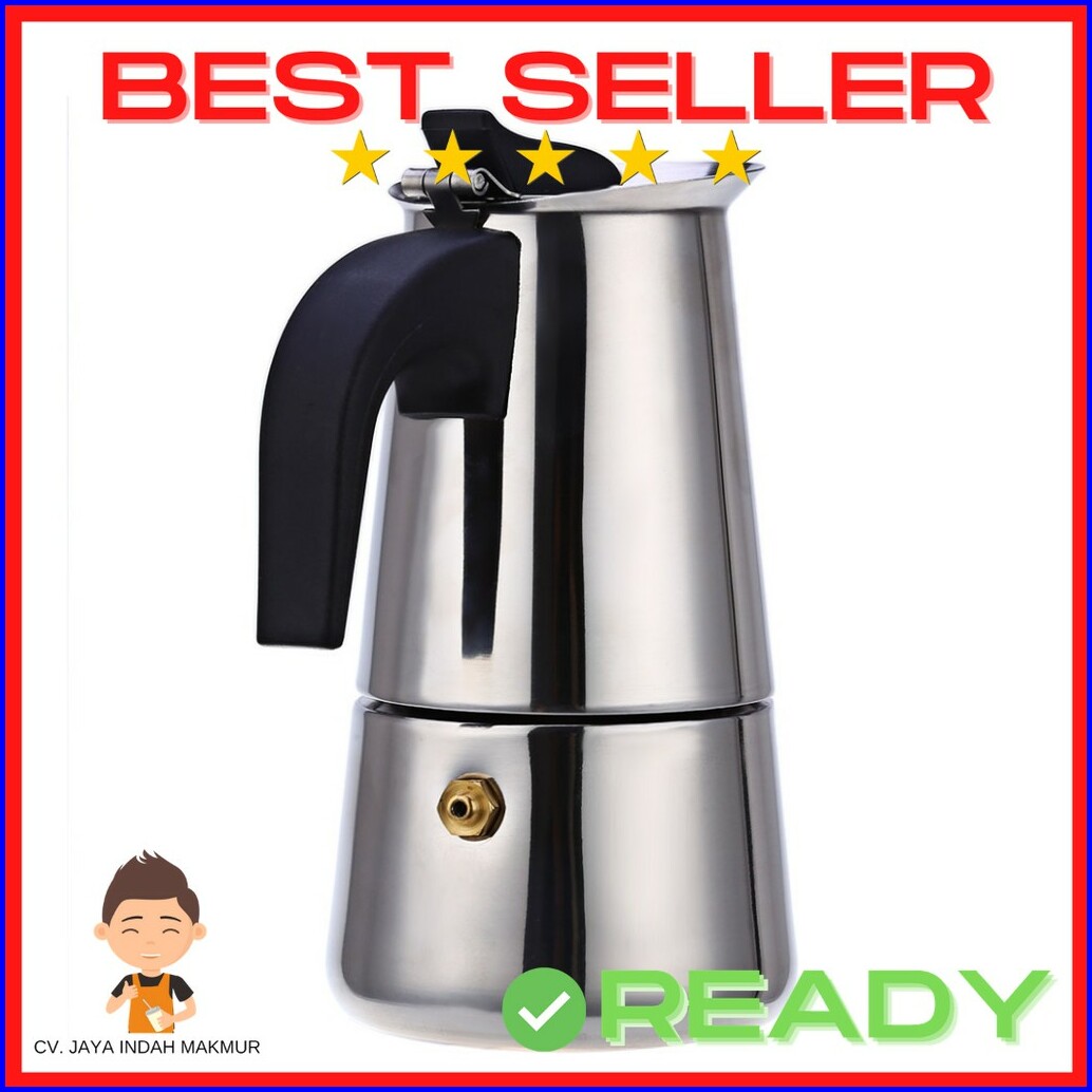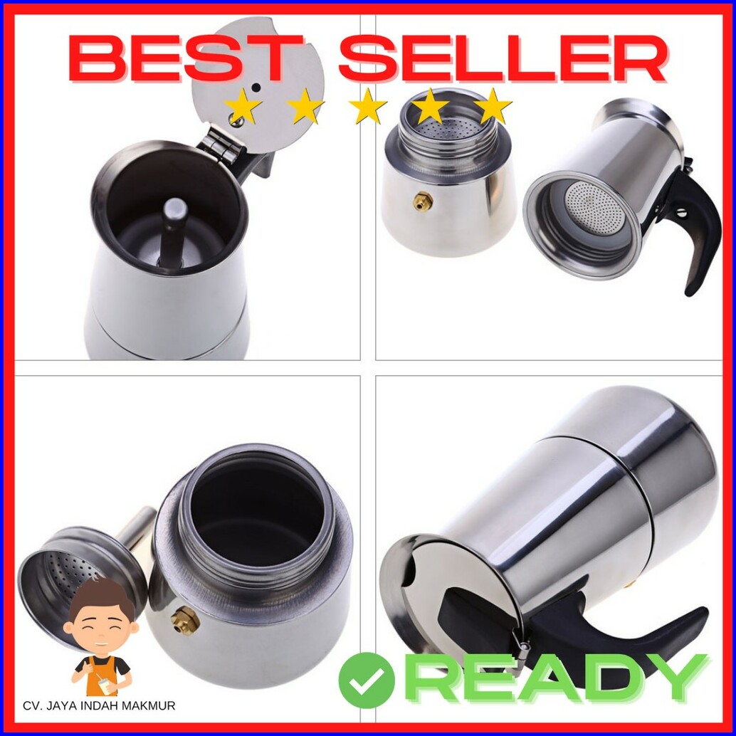 Alat Mesin Teko Pembuat Kopi Espresso Coffee Maker Moka Pot Teko Filter 300ml 6 Cup 100ml 2 Cup Stainless Steel