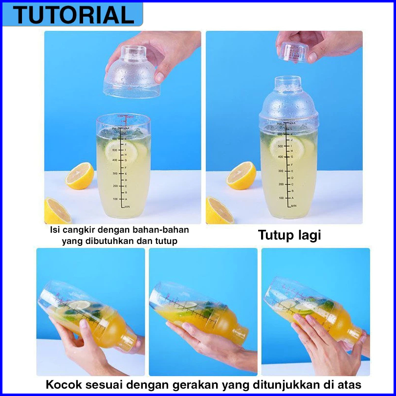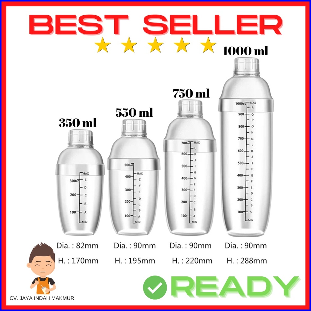 Plastic Cocktail Shaker Acrylic 350ml 500ml 550ml 700 750ml 1000ml 1liter Pengocok Minuman Plastik