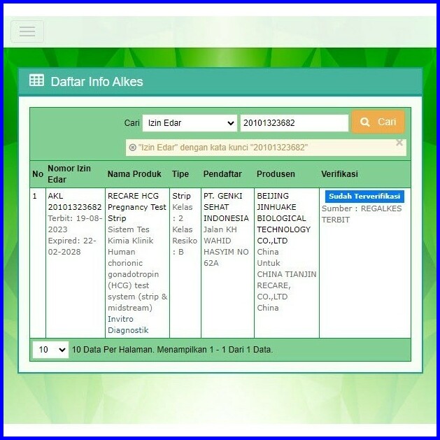 Recare Tes Kehamilan Test Pack Pregnancy Test - 1 Strip
