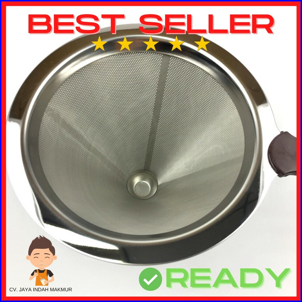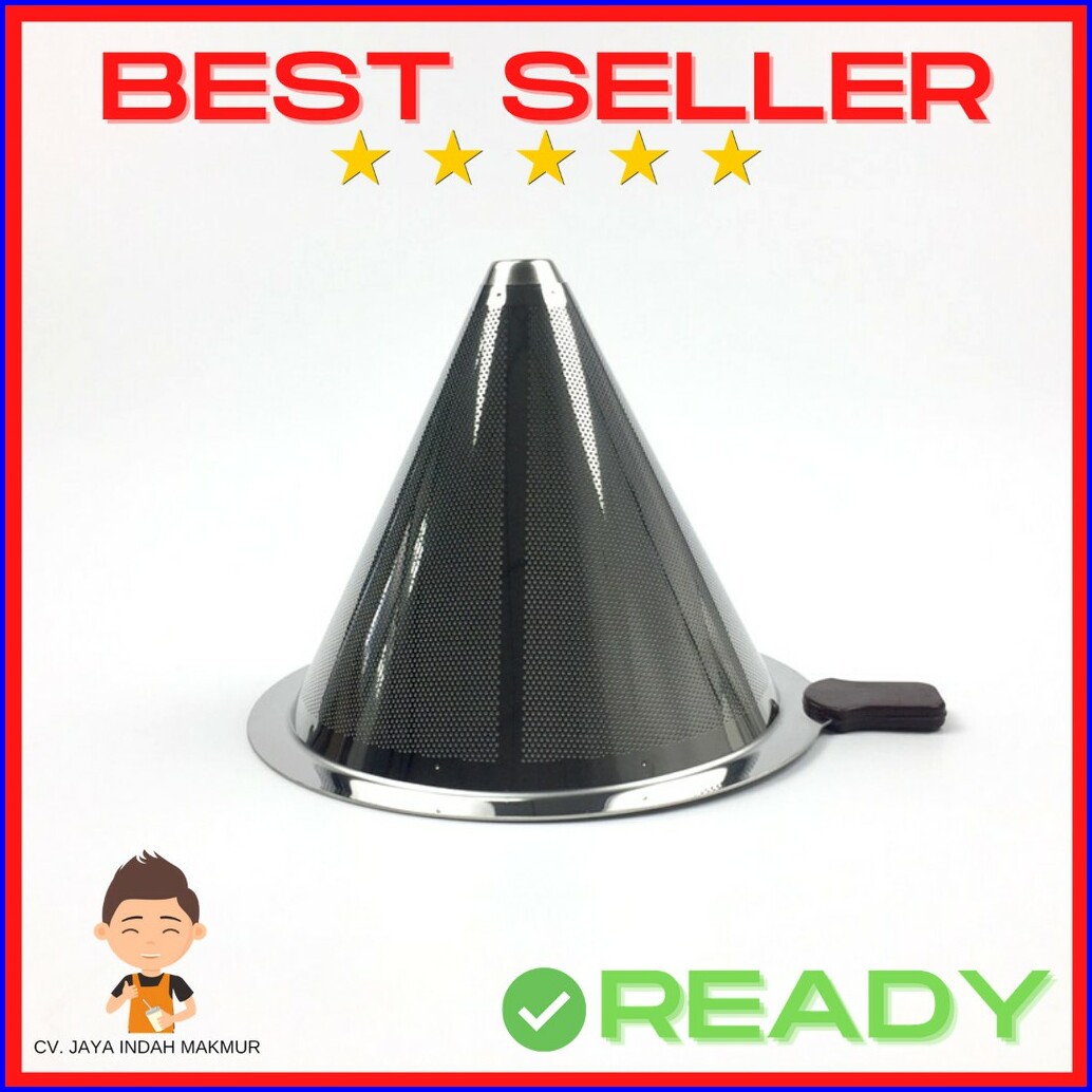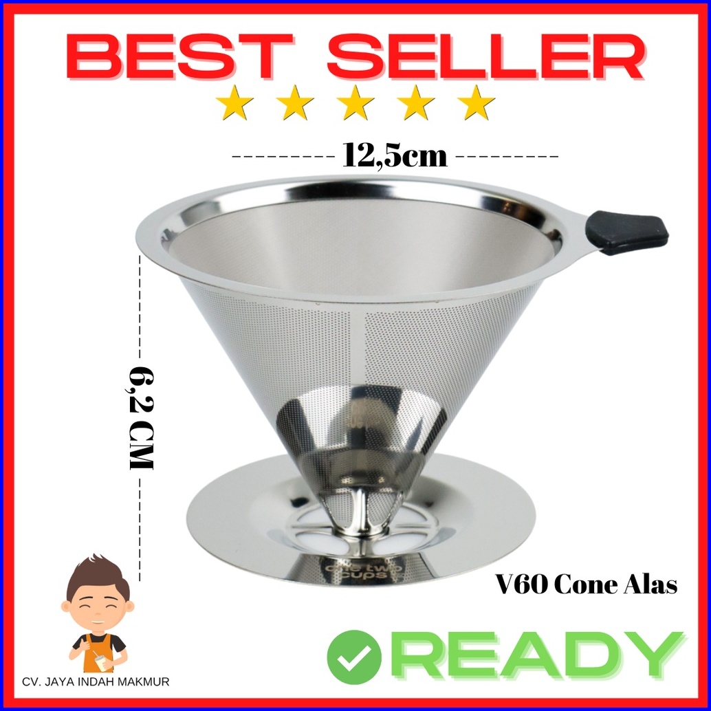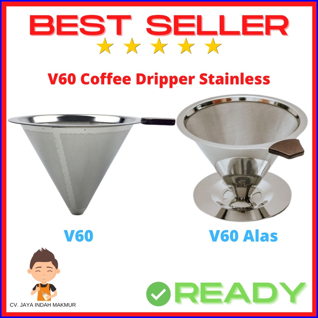V60 Dripper Kopi Stainless Steel Metal Coffee Dripper Paperless Double Layer No Ampas Kopi
