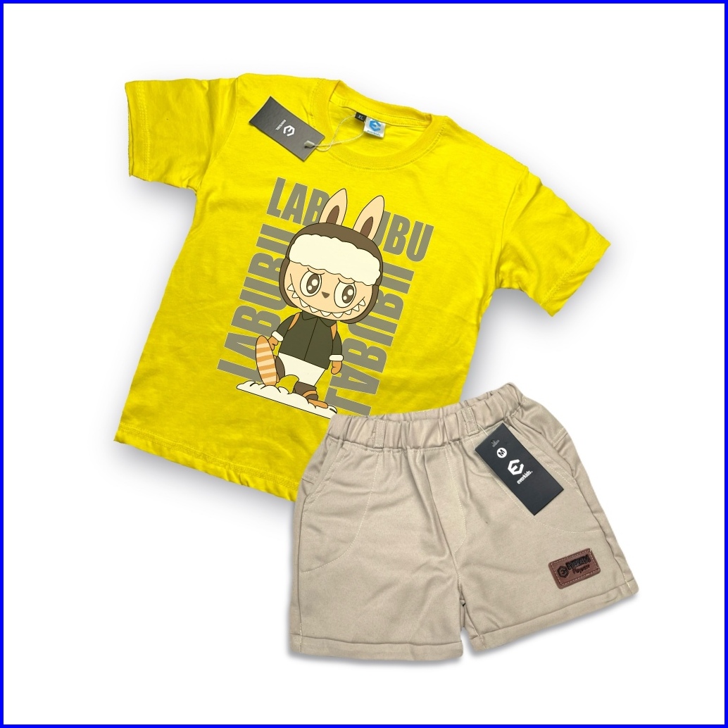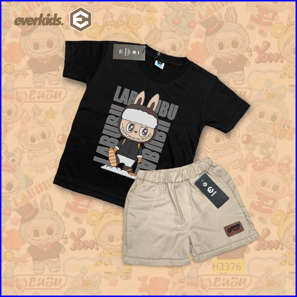 Everkids Setelan Kaos Anak 1-6 Thn Sablon Keren Kaos Labubu Kd 46