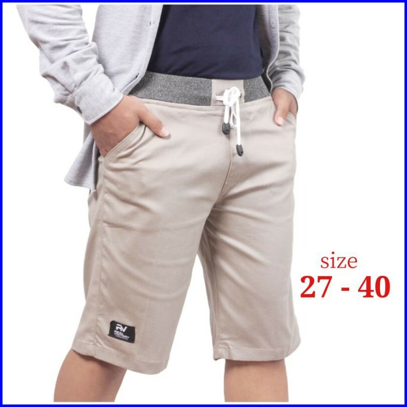 Celana Pendek Pria Cowok Dewasa Chino Rip Karet Pinggang Chinos Katun Twill Premiun