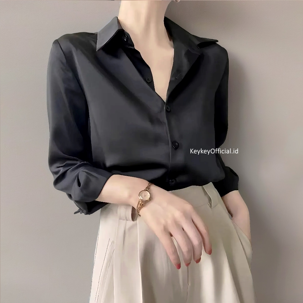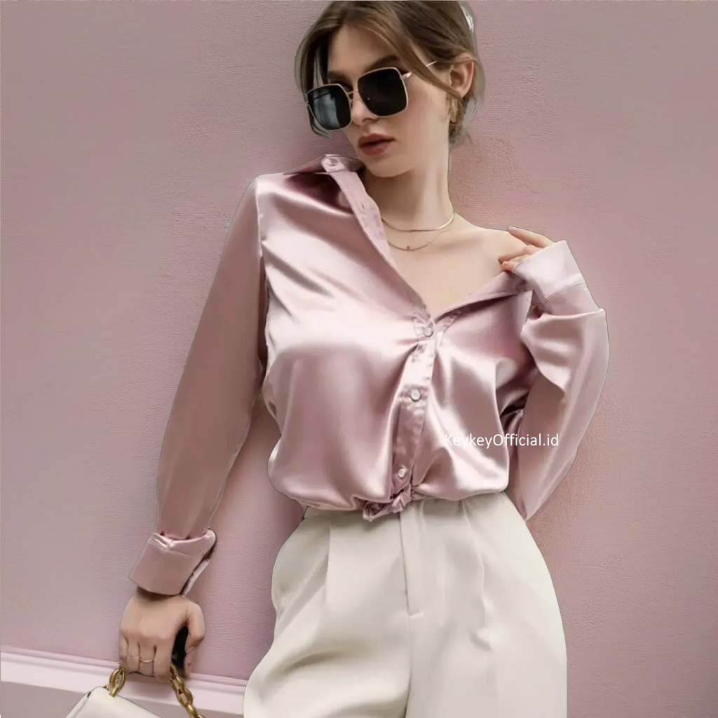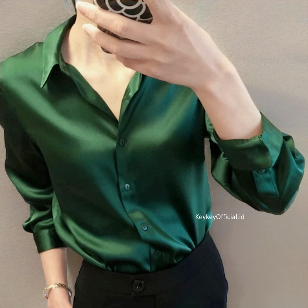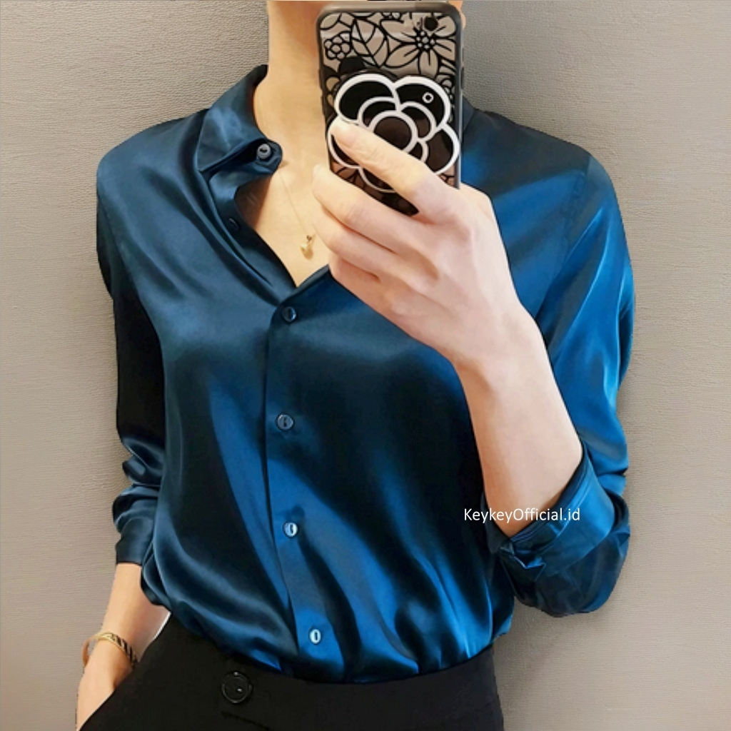 Key - 0138 Kem VELOVE SATIN VELVET PREMIUM Size XL / Kemeja Wanita Satin Velvet / Atasan Hijabers