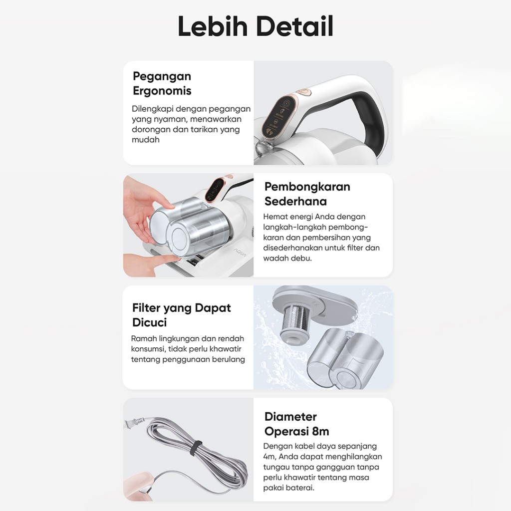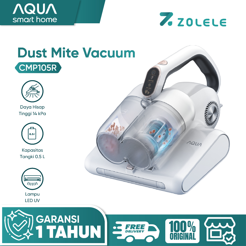 AQUA CMP105R 14Kpa UV Anti Dust Mite Vacuum Cleaner Kasur Sofa Penyedot Debu 400W UV Anti Tungau Dengan Gelas Debu Ganda