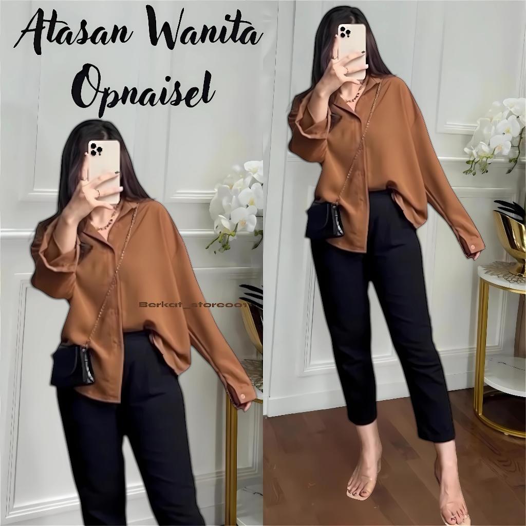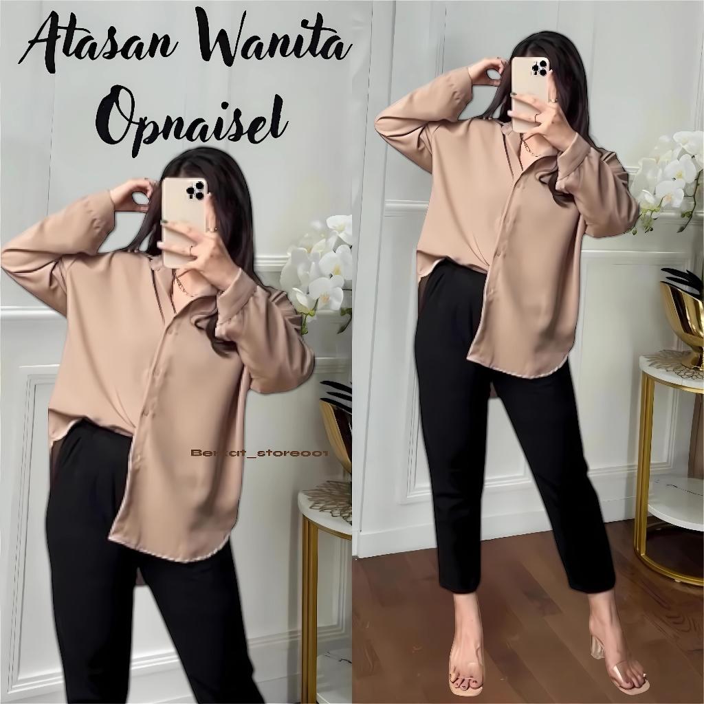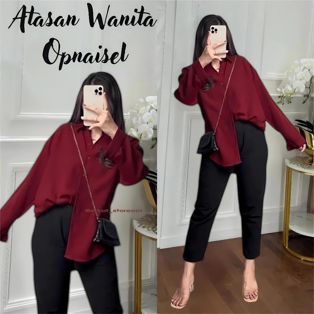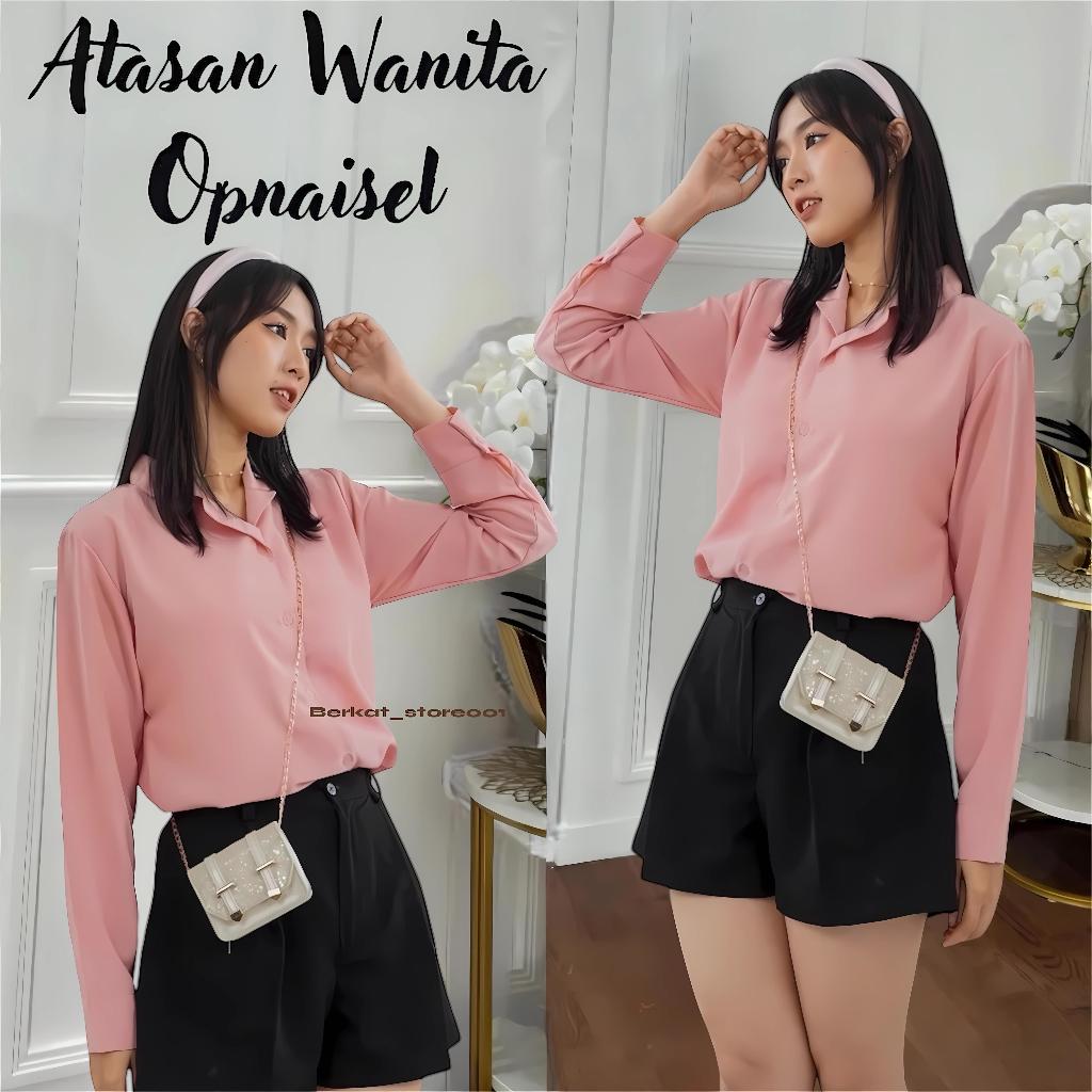 Blouse Wanita Leher V Polos / Kemeja Wanita V Korean Style / Baju Wanita Lengan Panjang