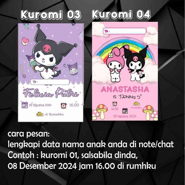 Undangan ulang Tahun Kuromi Undangan Ulang Tahun Murah free plastik Undangan Ulang Tahun isi 50 + plastik