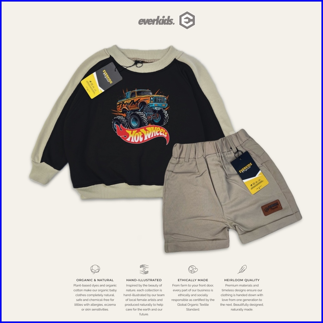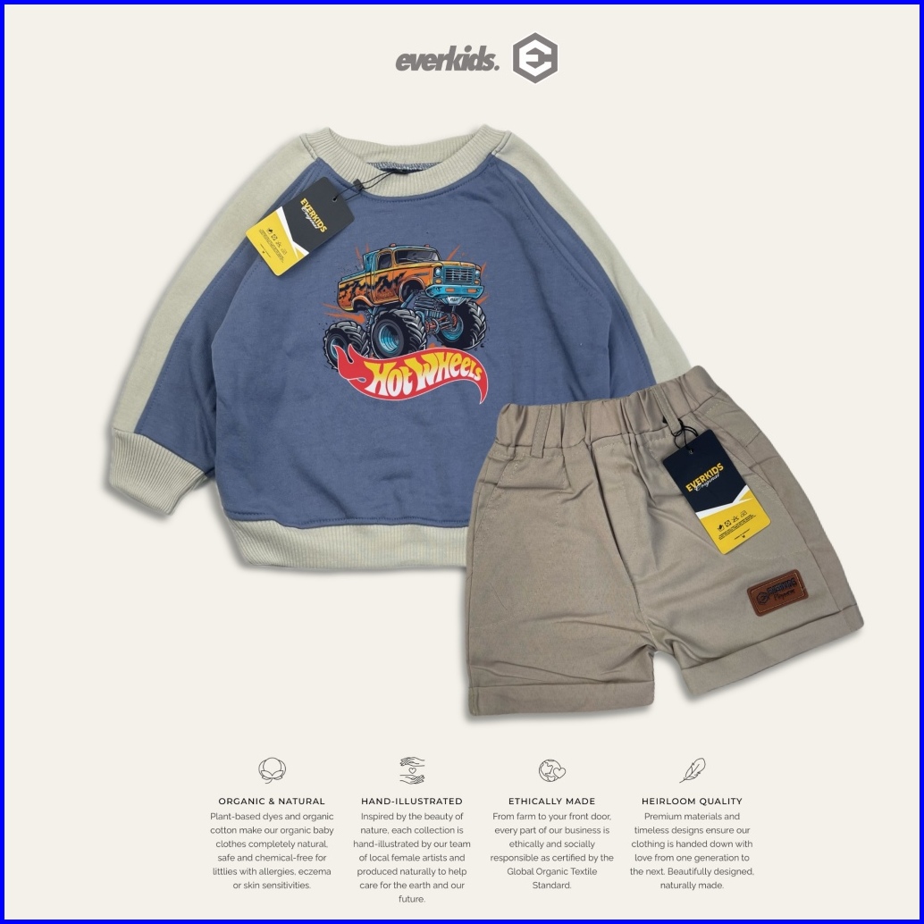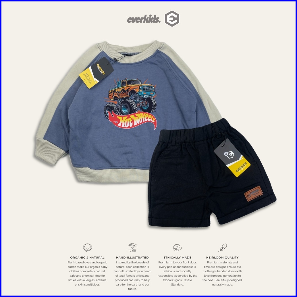 Everkids Setelan Sweater Anak Crewneck List 1-6 Tahun Sweater Anak Hot Wheel