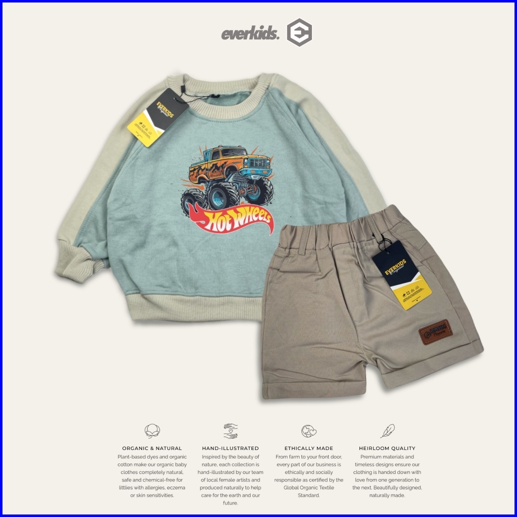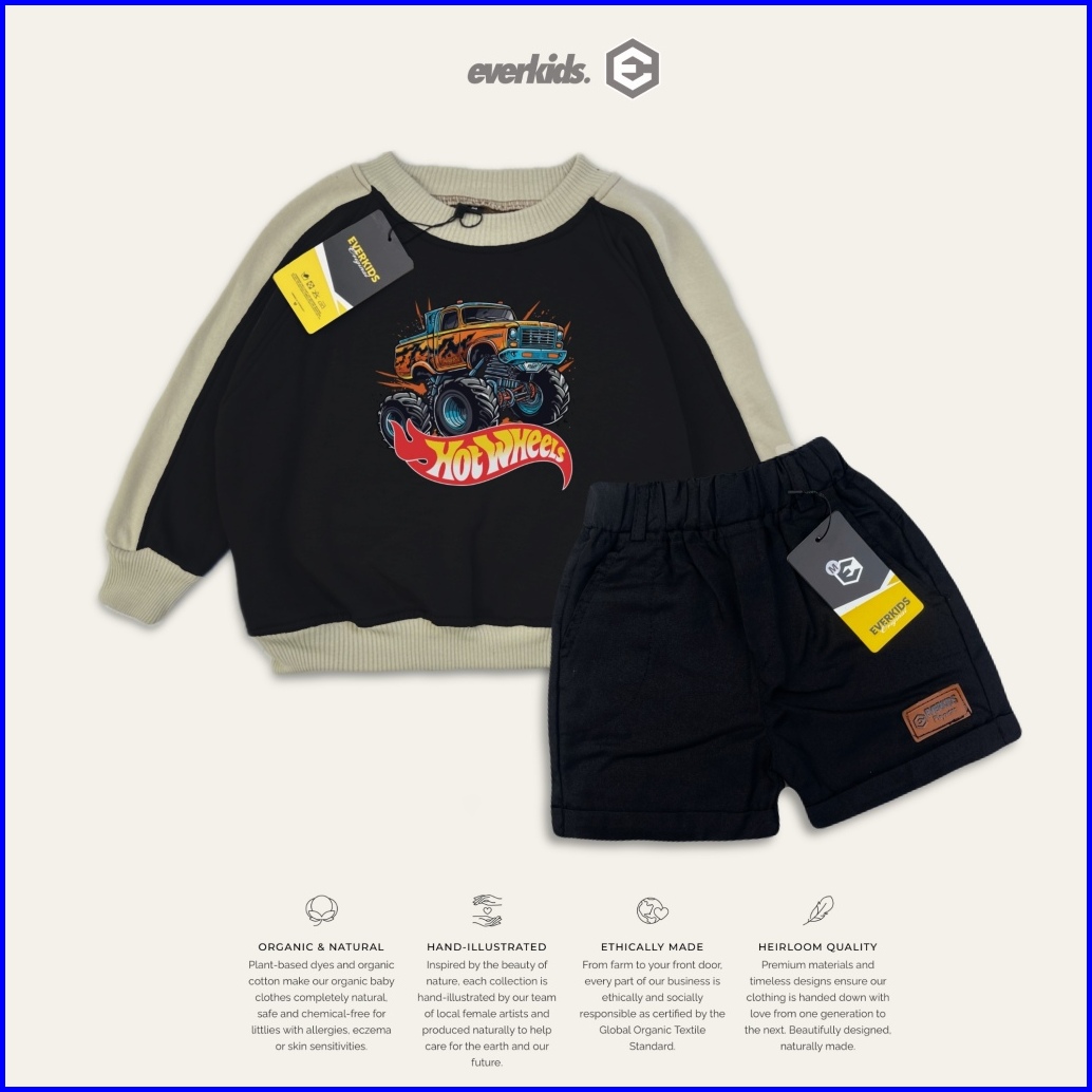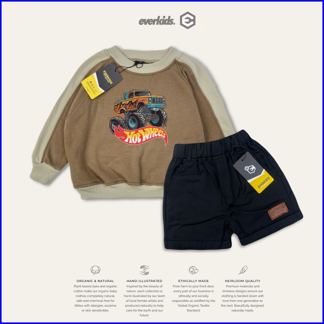 Everkids Setelan Sweater Anak Crewneck List 1-6 Tahun Sweater Anak Hot Wheel