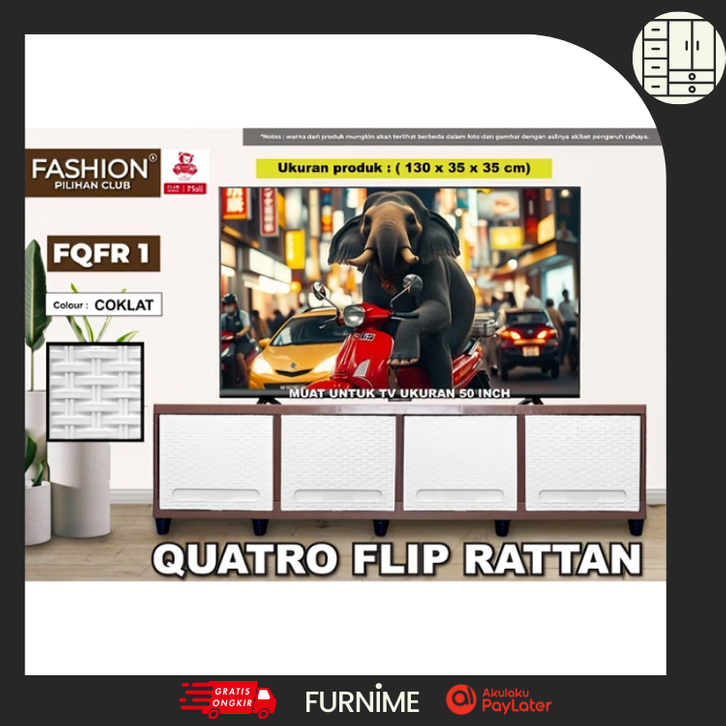 Lemari Plastik Rak Susun Serbaguna CLUB Fashion Quatro FLIP Rattan Kabinet TV Minimalis Estetik Lemari TV Minimalis