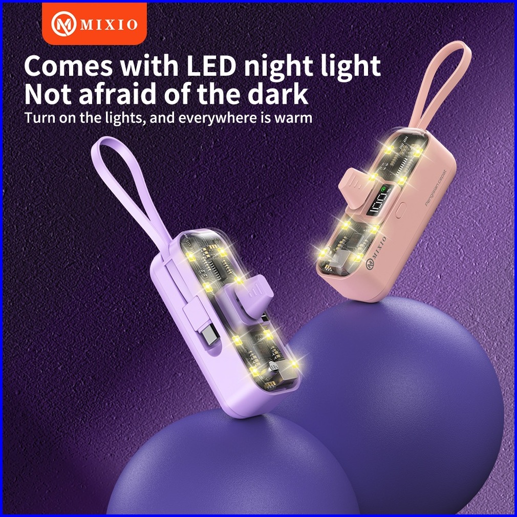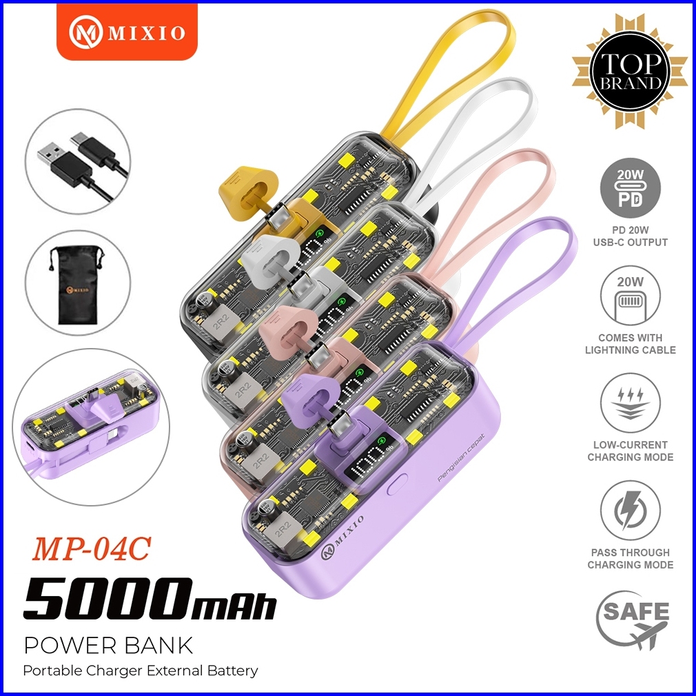 Mixio Mp-04 Powerbank 5000mah Portable Mini Transparan Lightning Ios Type C Pd Fast Charging With Led