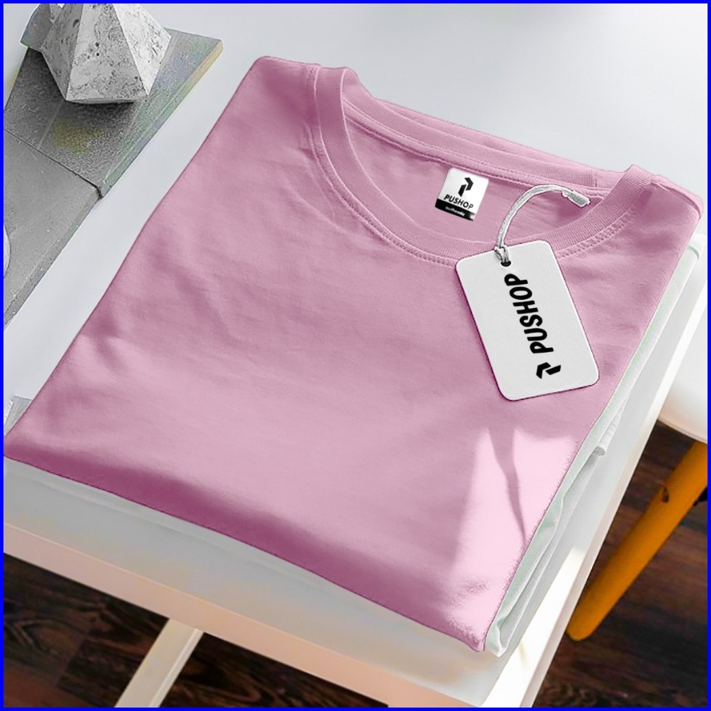 Pushop Basic Kaos Polos Cotton Combed 30 S Lengan Pendek Pink Muda