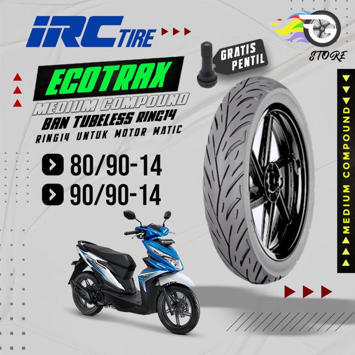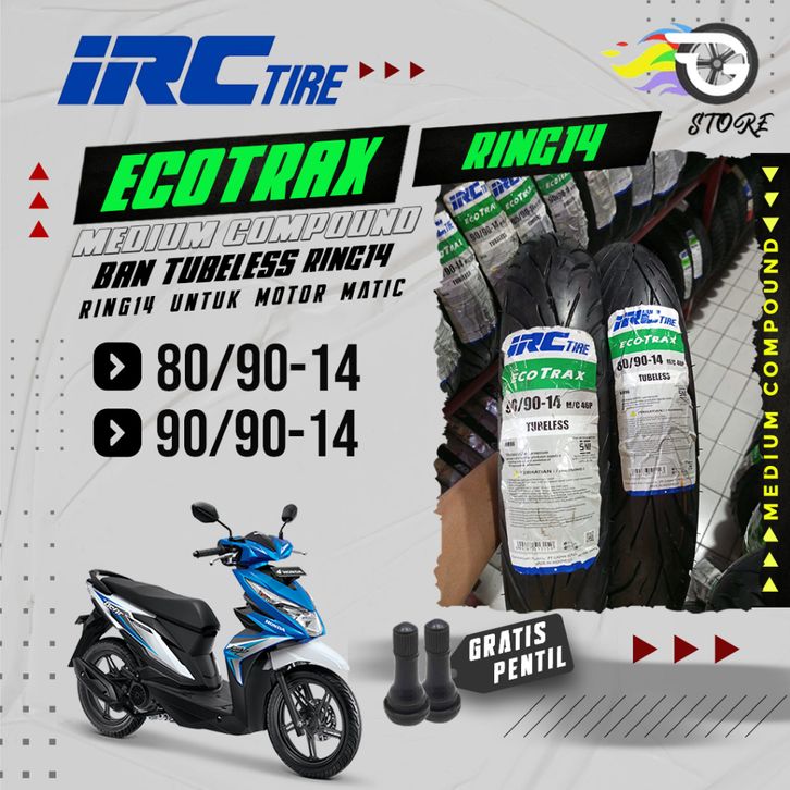 [Star] ( GRATIS ONGKIR ) Ban Motor Matic IRC ECOTRAX NR96 Ring14 80/90&90/90-14 Tubeles Depan Belakang BEAT,VARIO, DLL
