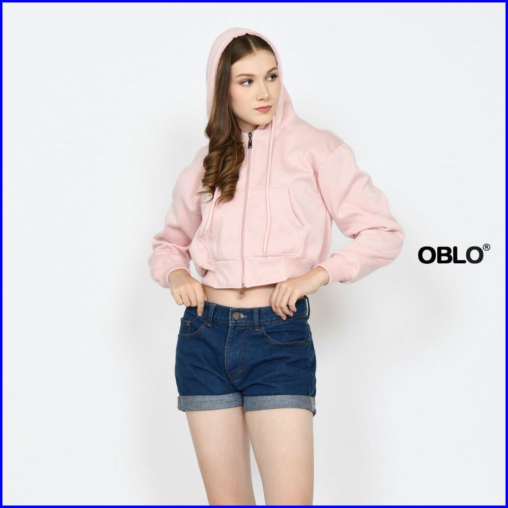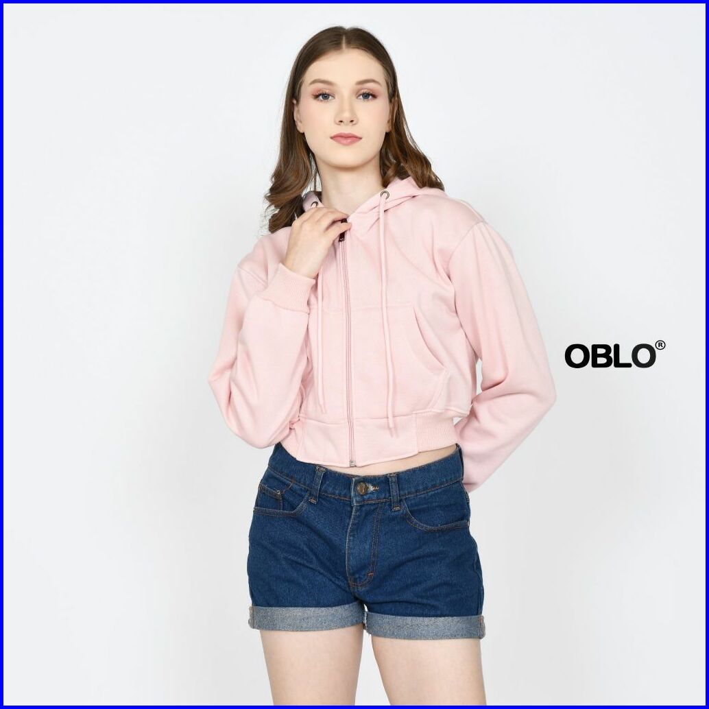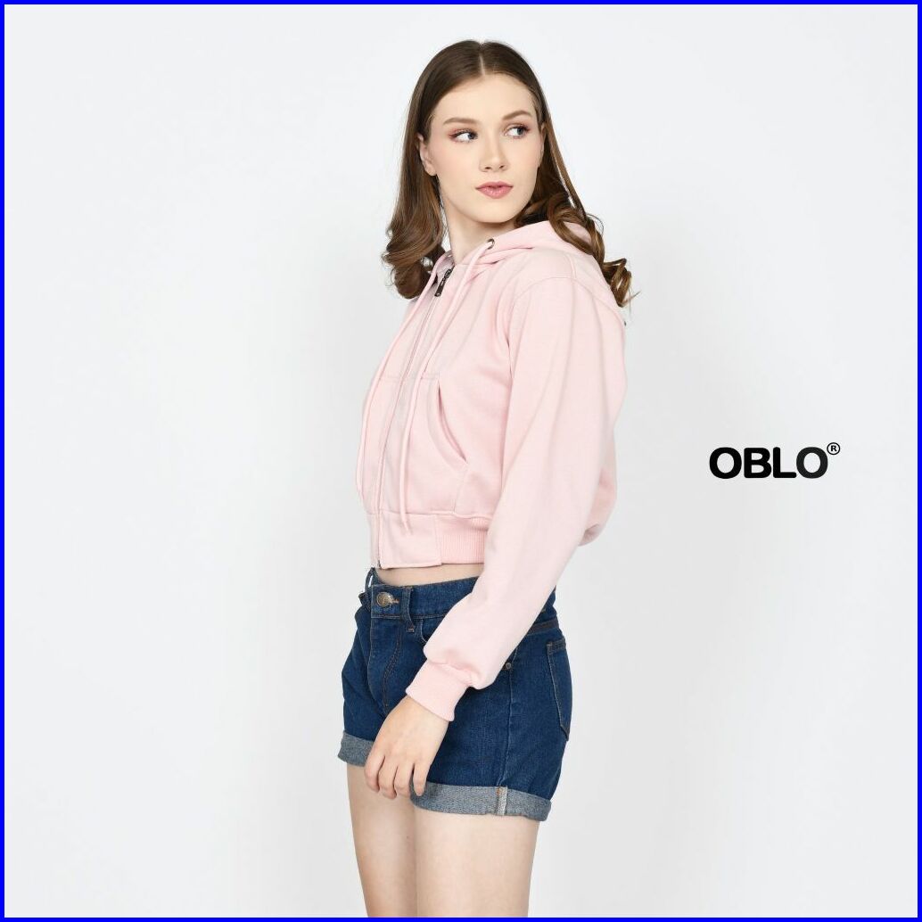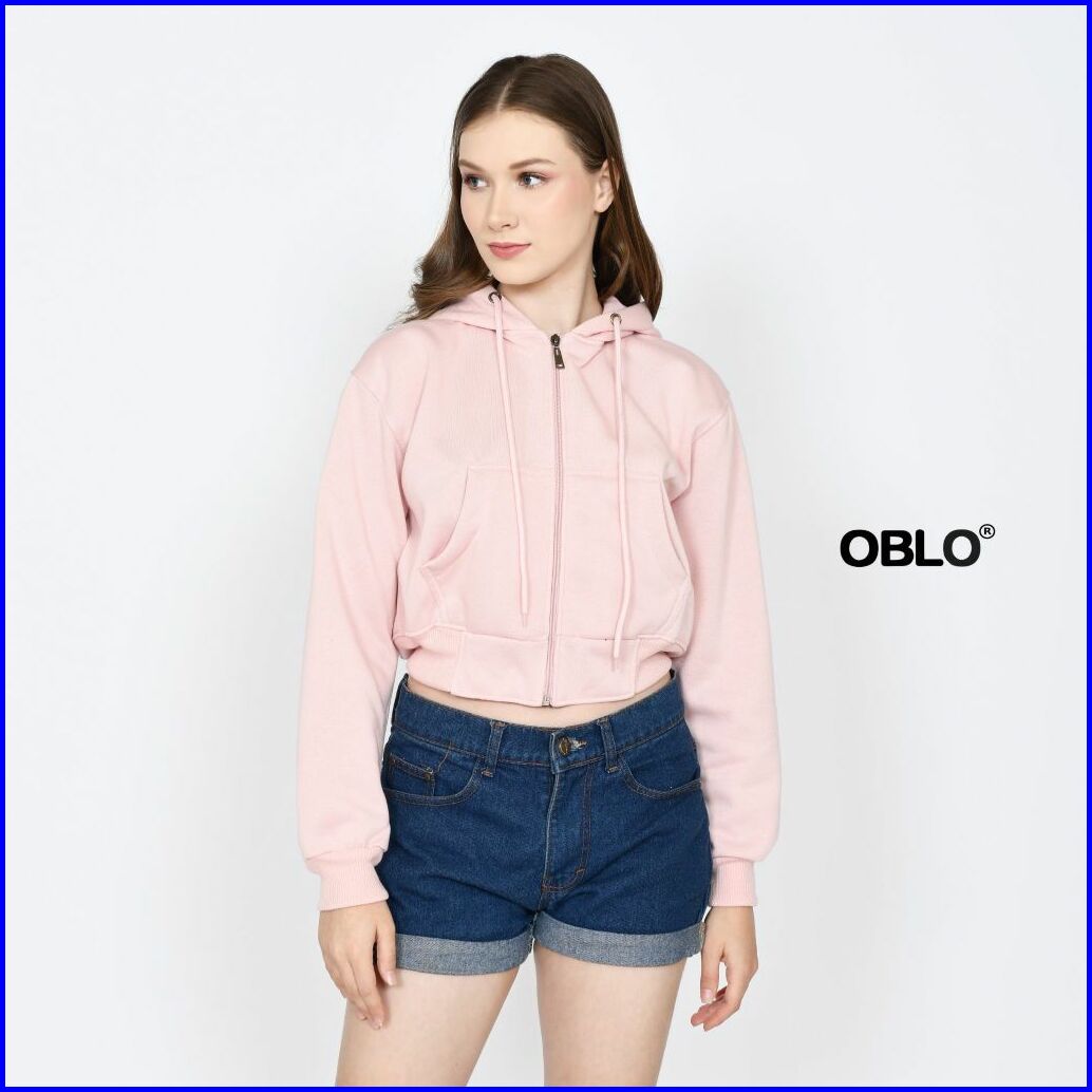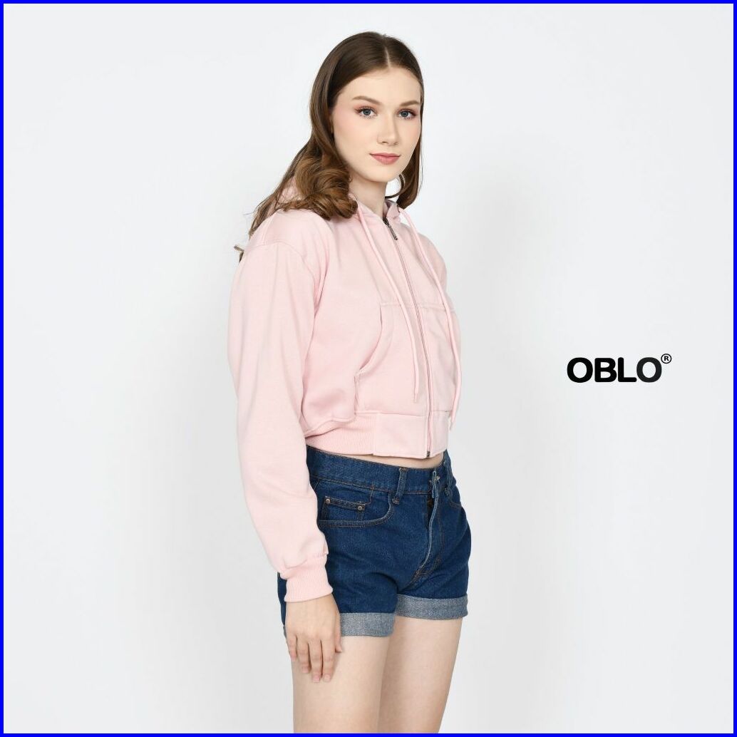 Oblo Basic Hoodie Crop Zipper Jaket Resleting Wanita Allsize