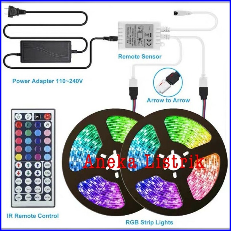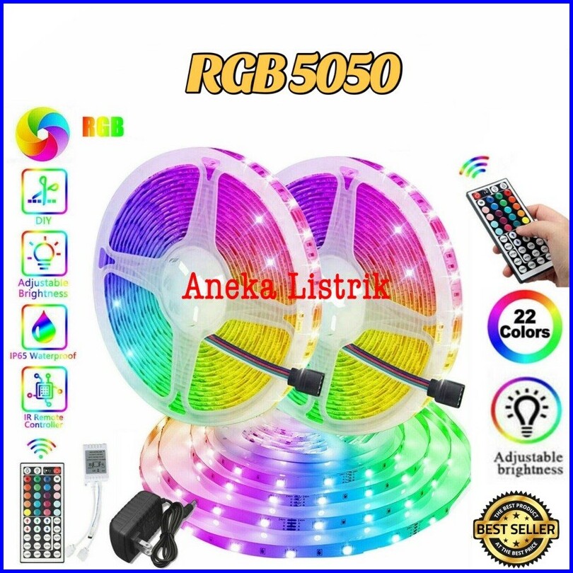 Led Strip Rgb 5050 Warna Warni Ip44 10m Ac 220v Adaptor Remote 5050 Lampu Tiktok