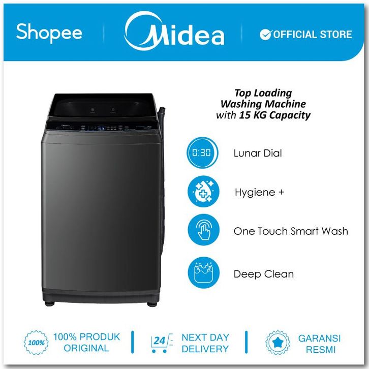 Midea Mesin Cuci Top Load Kapasitas 15 kg - MA200W150DT - One Touch Smart Wash
