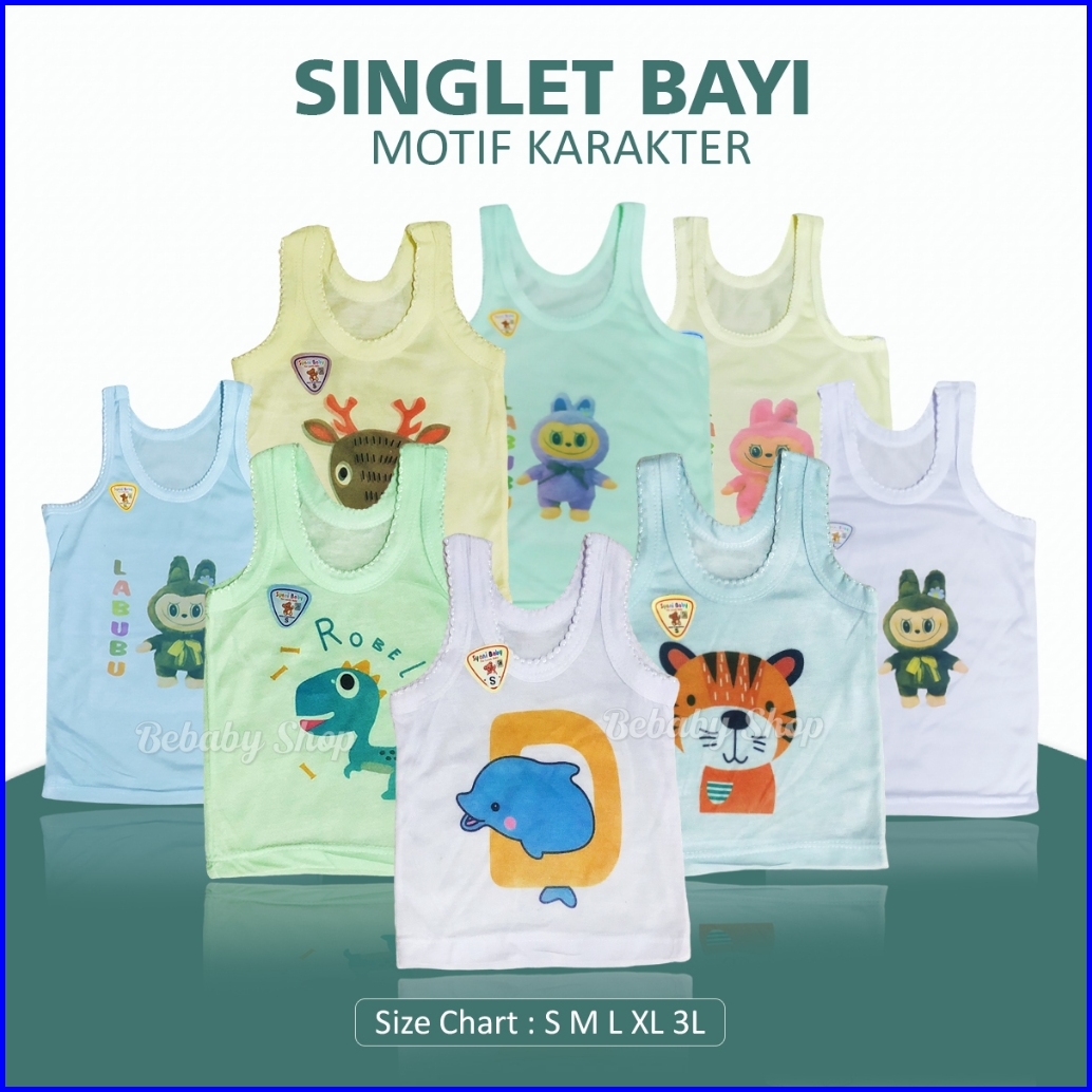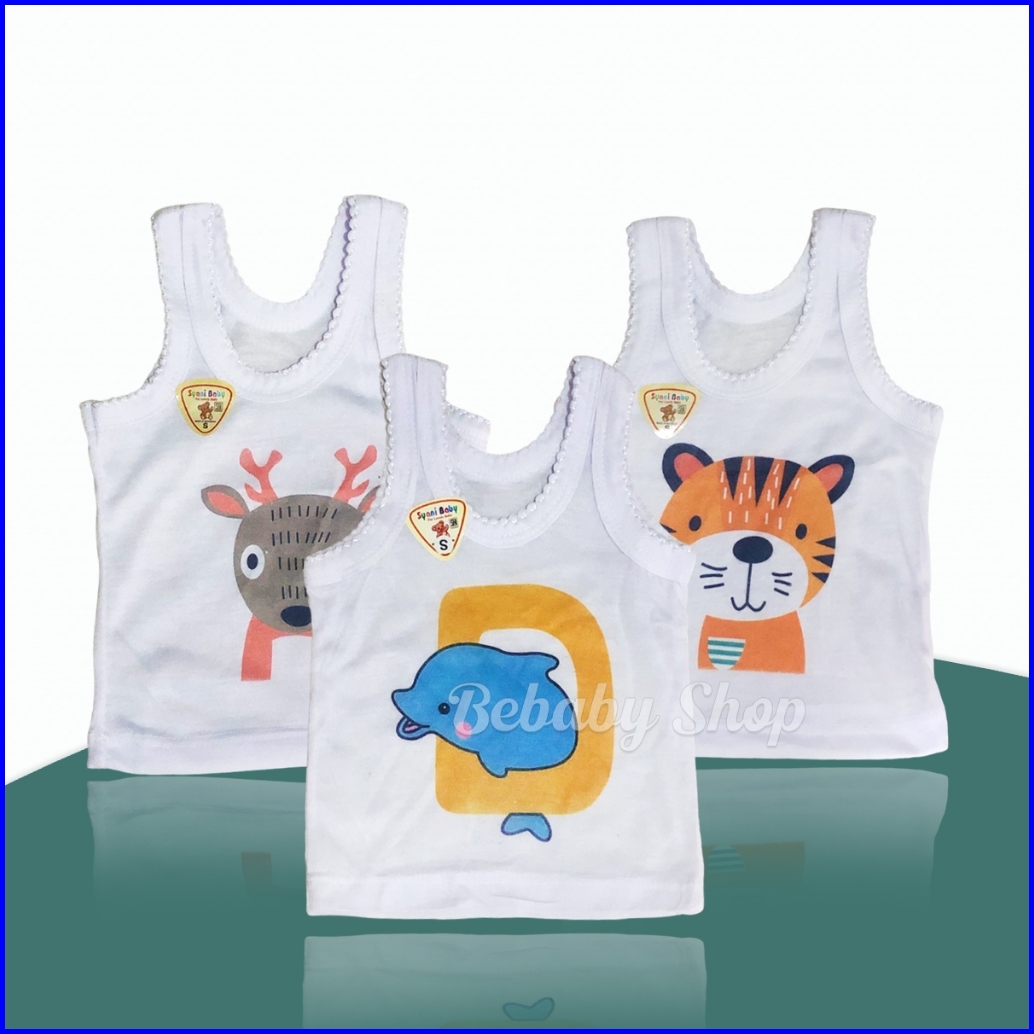 3pc Singlet Anak Bayi Syani Baby Seri Motif Putih Warna Kaos Dalam Bayi Newborn S M L Xl 3l