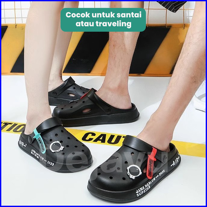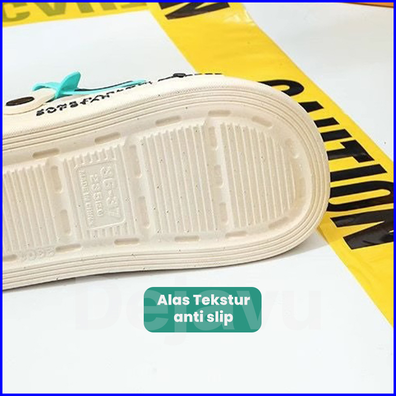 Dejavu Sandal Fuji Wanita Wedges Jibbitz Kekinian Sandal Baim Rumah Karet Jelly Sepatu Slop Anti Slip Hsn171