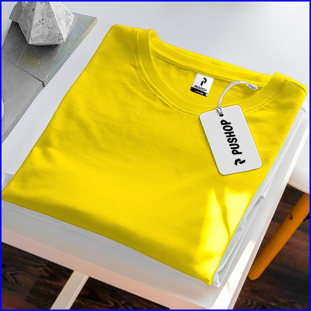 Pushop Basic Kaos Polos Cotton Combed 30 S Lengan Pendek Kuning