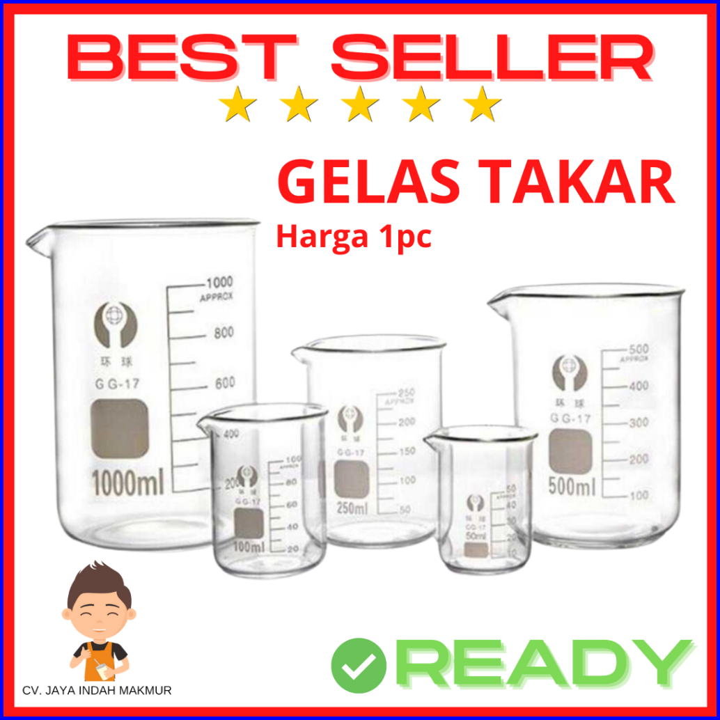 Gelas Ukur Gelas Takar Lab Borosilicate Glass Tahan Panas Skala Tebal 50ml 100ml 250ml 500ml