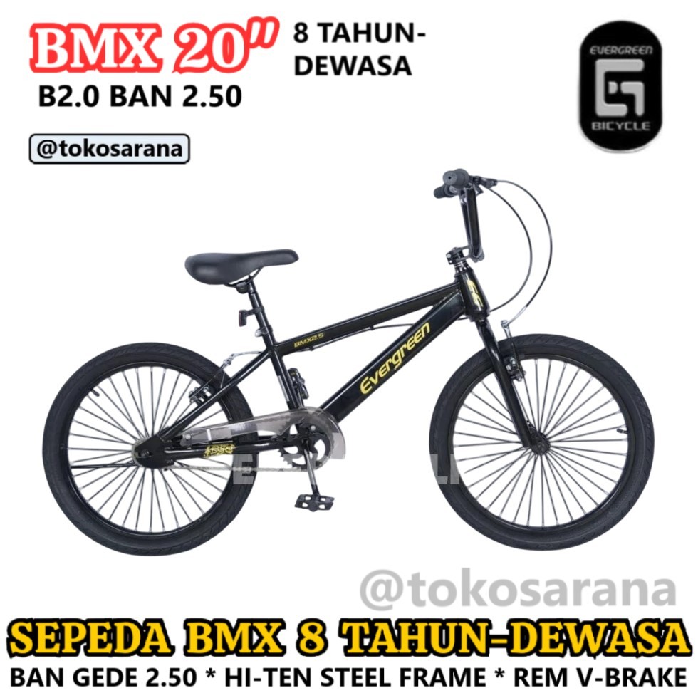 Sepeda BMX 20in Evergreen B20 B25 Hi-Ten Steel 8 Tahun - Dewasa Rem V-Break One Piece Crank (OPC) / SEPEDA ANAK / SEPEDA