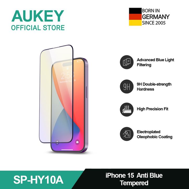Tempered Glass Iphone AUKEY iPhone 15 Premium OptiGlow Anti-Blue Ray Tempered Glass SP-HY10 Screen Protector