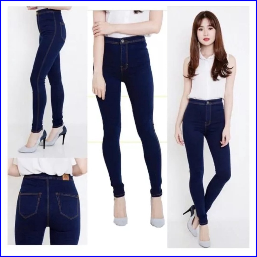Denim Celana Hw Polos Jeans Long Wanita Skinny