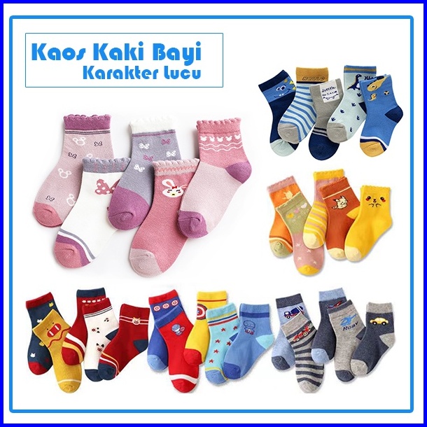 Kaos Kaki Bayi Newborn Motif Lucu Boy Girl Isi 3 Pasang