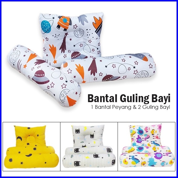 Bantal Guling Bayi Set 1 Bantal Peyang Dan 2 Guling Bayi Motif Karakter