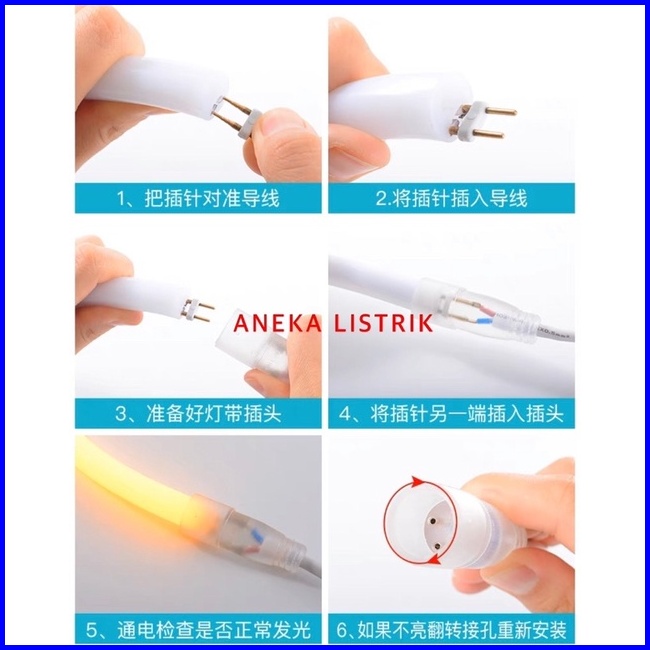 Soket Konektor Colokan Lampu Led Neon Flex 360 Selang 220v Waterproof