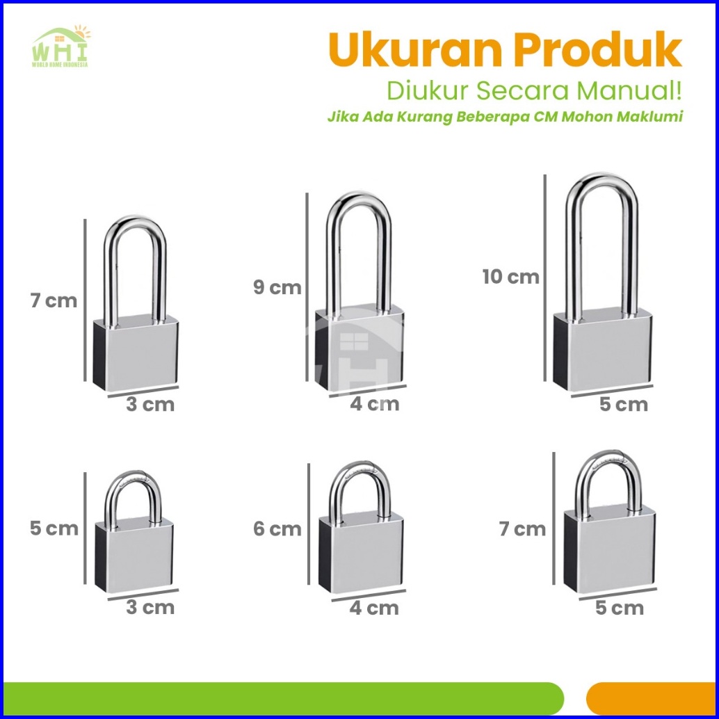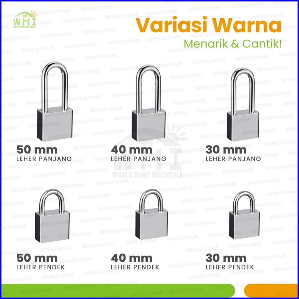 World Home Gembok Putih Stainlees Anti Rust Anti Maling Cut Gembok 30 40 50mm Gembok Rumah Pagar